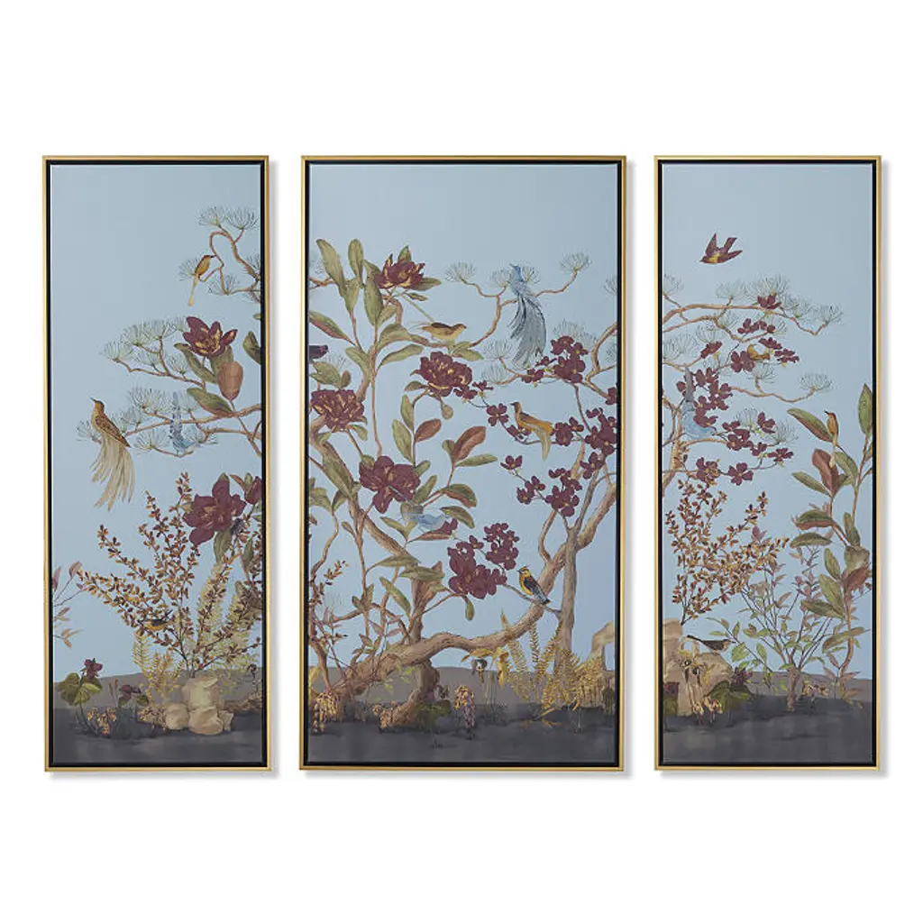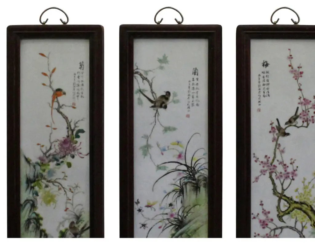 Chinese Color Porcelain Flower Birds Wood Wall Panels Set Hcs4985