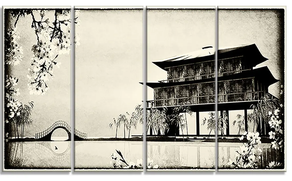 "Chinese Ink Painting" Canvas Print, 4 Panels, 48"x28"