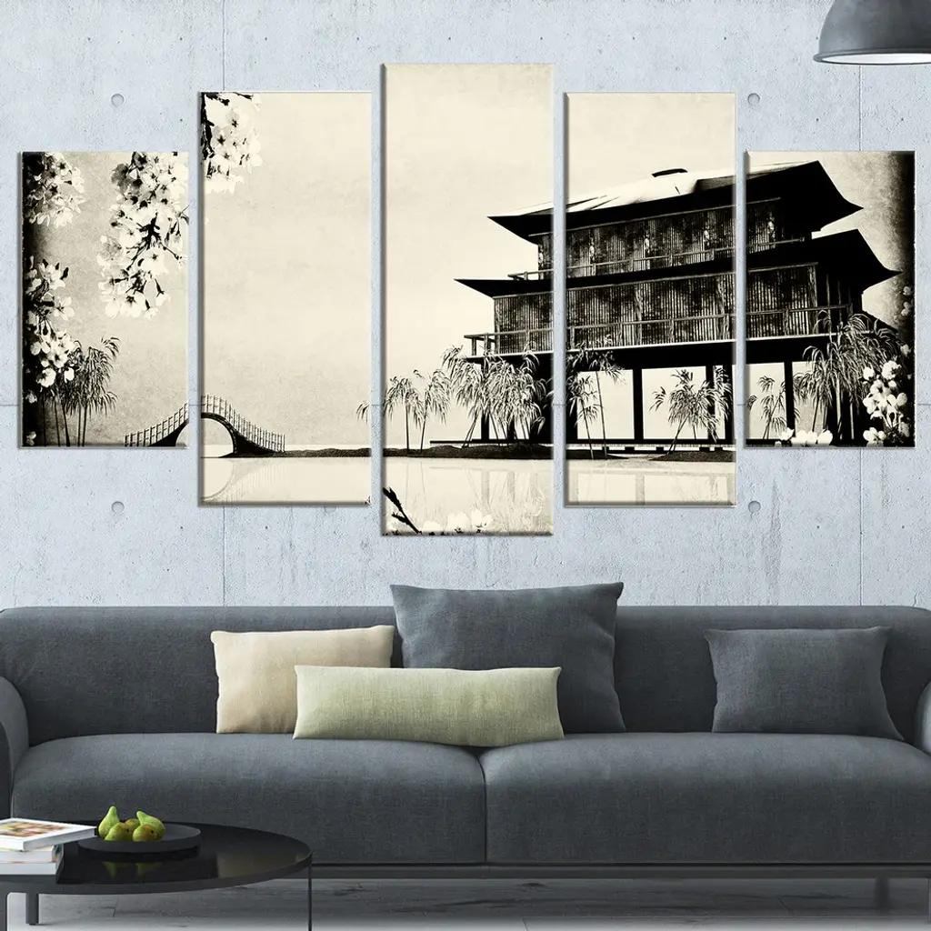 "Chinese Ink Painting" Canvas Print, 5 Panels, 60"x32"