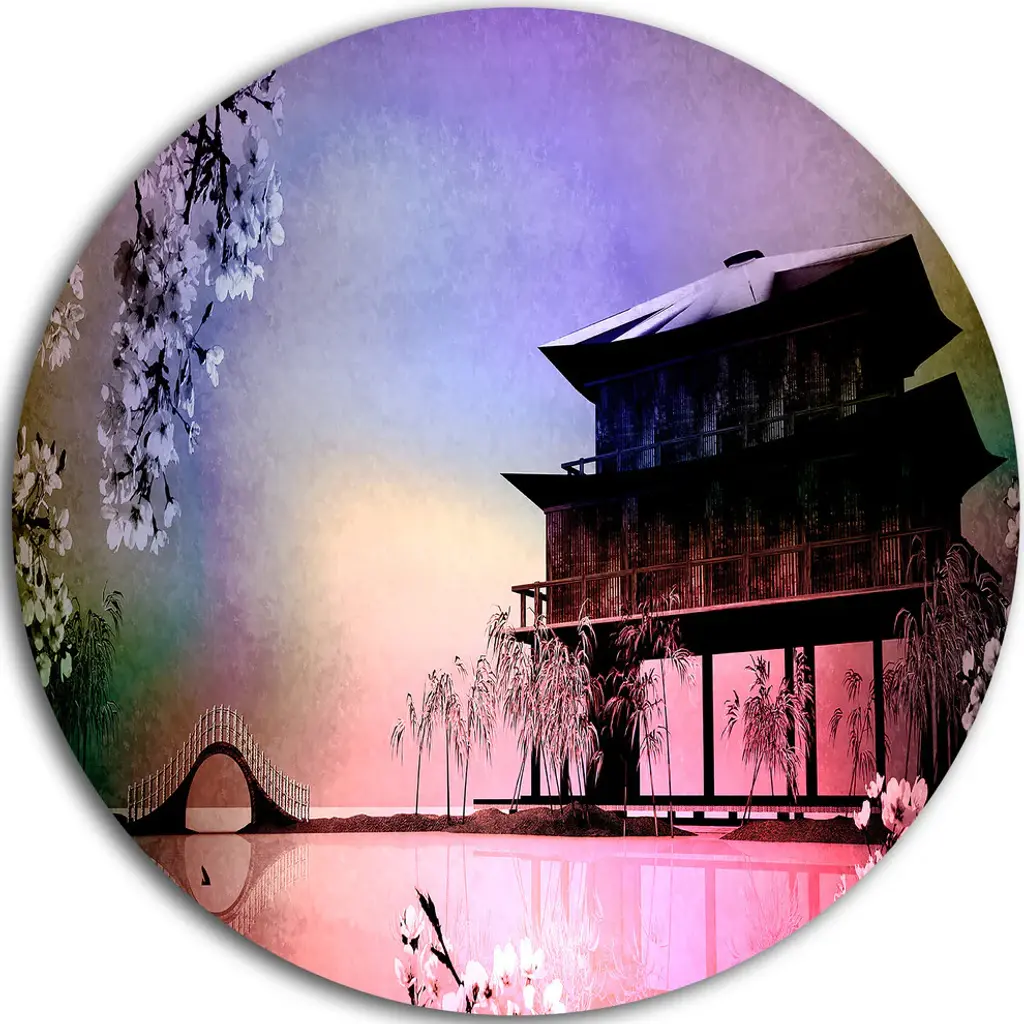 Chinese Ink Painting, Chinese Landscape Round Wall Art, 38"