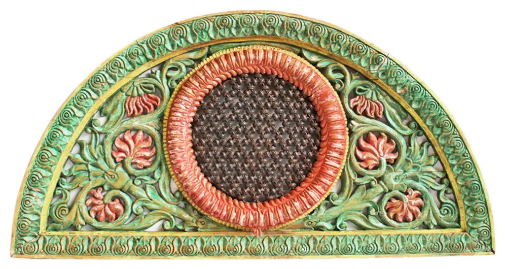 Chinese Matte Chalk Color Fan Shape Flower Bird Wood Wall Panel, Hws2156
