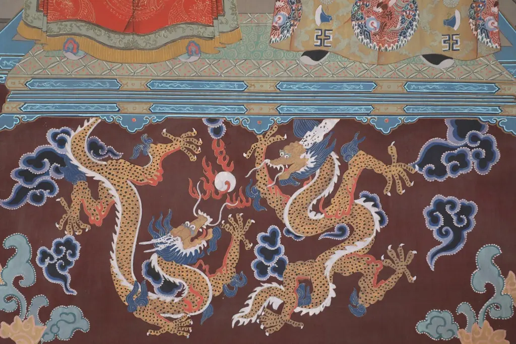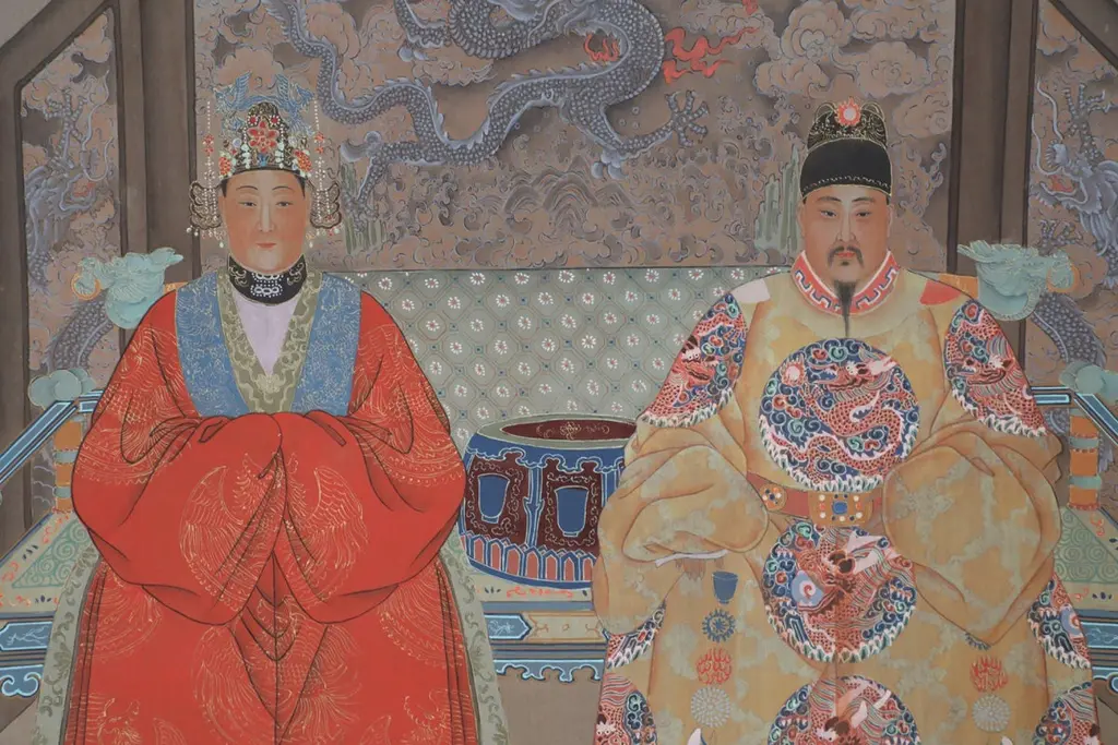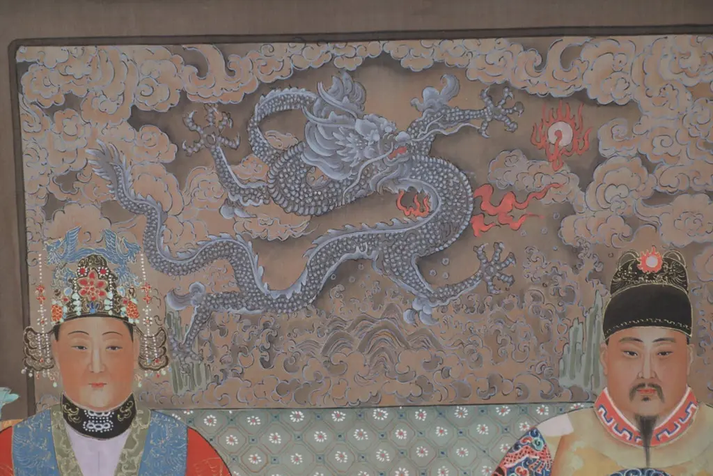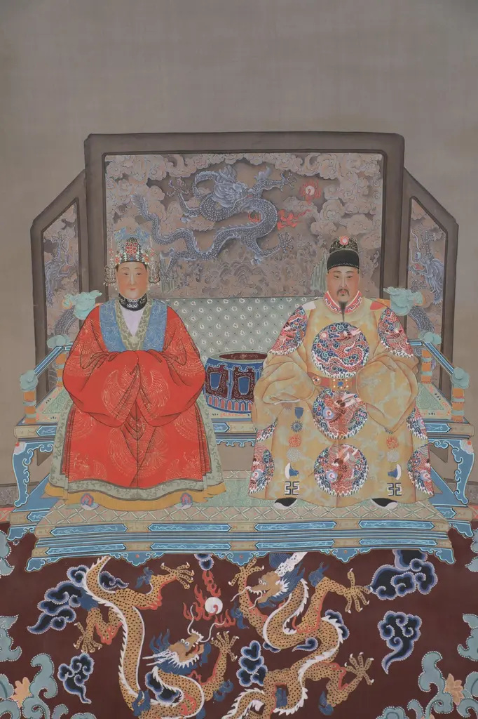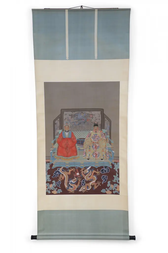 Chinese Ming Dynasty Style Paper And Silk King And Queen Portrait Hanging Scroll