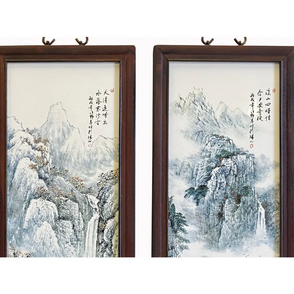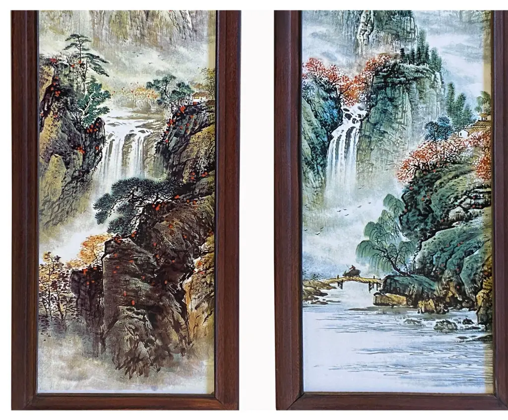 Chinese Mountain Water Scenery Porcelain Color Painting Wall Panel Set Hws1953