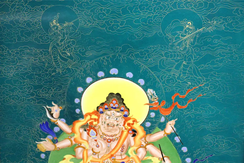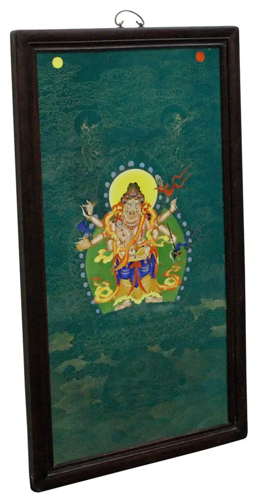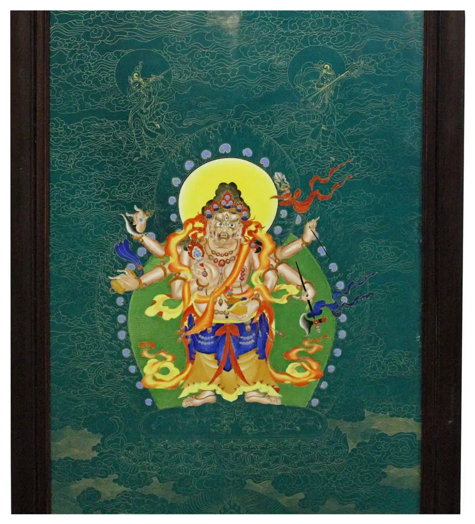 Chinese Porcelain Teal Blue Tibetan Deity Painting Wall Decor Hcs4187