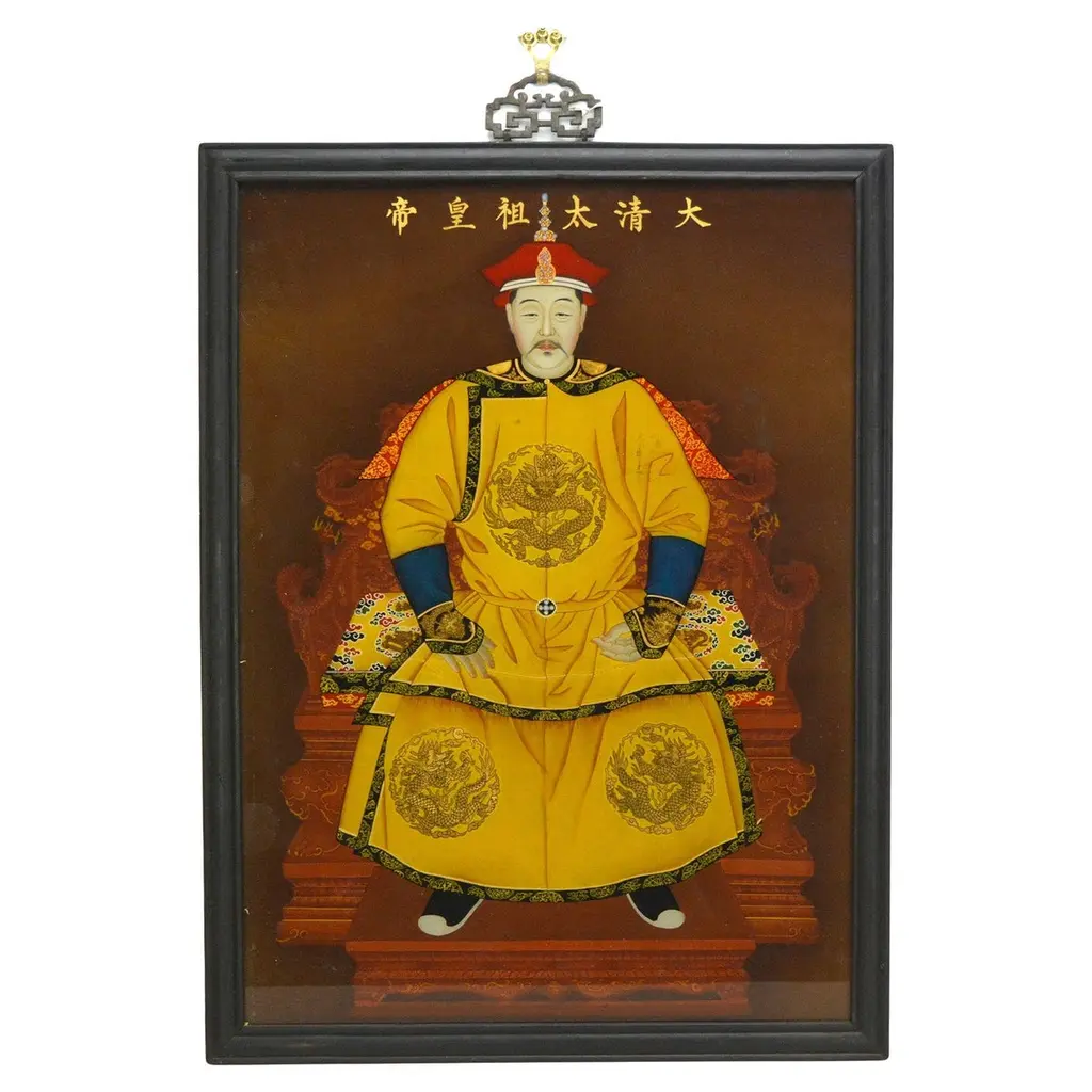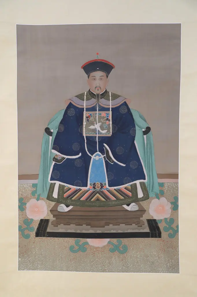 Chinese Qing Dynasty Style Paper And Silk King Portrait Hanging Scrolls