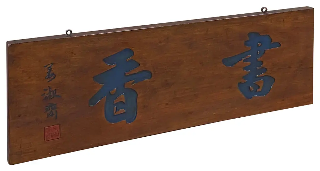 This exquisite piece is a traditional Chinese horizontal rectangular panel plaque, crafted for decorative purposes. Its compact size makes it a charming addition to your wall decor, lending an elegant touch to accentuate and enrich your living space. The relief characters read from right to left " Shu Xiang " - means " the atmosphere of Study ". Dimensions: w27"x h9.75" thickness 1"Origin: China Material: Wood Condition: Handmade, vintage-style finish, minor wood crack repair marks, as itFor all USA domestic continental customers (from 48 states), there is a flat shipping fee of $60, which includes insurance and handling charges. (Additional shipping charges apply to buyers from Hawaii, Alaska, US Islands, Florida Keywest, and Canada). If you are in the San Francisco Bay Area, we warmly encourage you to take advantage of our convenient in-store pick-up option at no extra cost. Please keep all original packing material and box if damage happens.