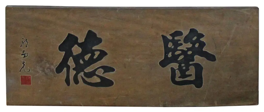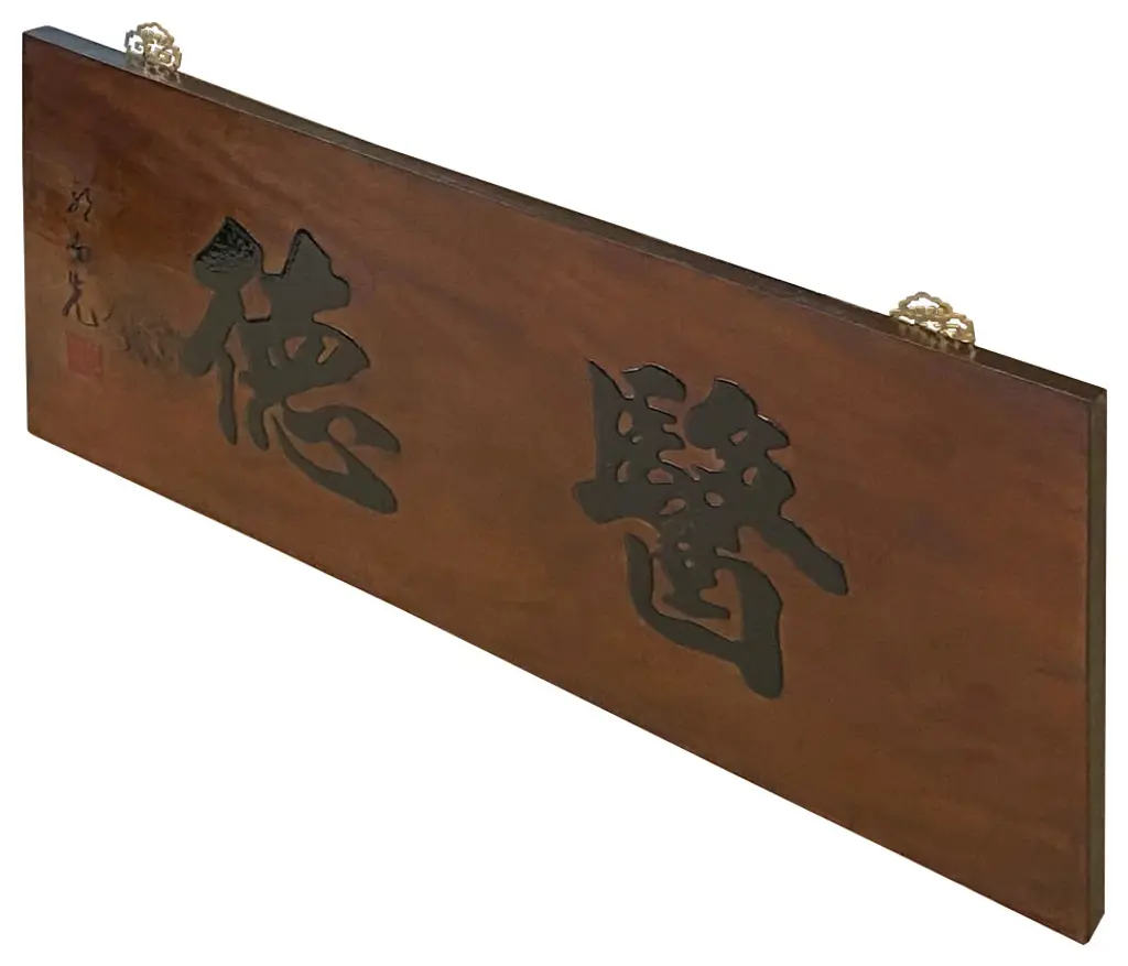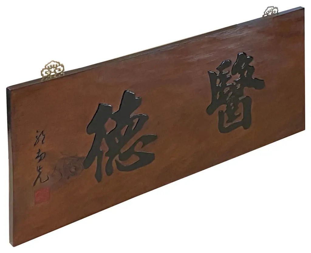 This exquisite piece is a traditional Chinese horizontal rectangular panel plaque, crafted for decorative purposes. Its compact size makes it a charming addition to your wall decor, lending an elegant touch to accentuate and enrich your living space. The relief characters read from right to left " YiDe " - means " Medical Ethics ".Dimensions: w35.5"x h15" thickness 1"Origin: China Material: Wood Condition: Handmade, vintage-style finish, minor wood crack repair marks, as itFor all USA domestic continental customers (from 48 states), there is a flat shipping fee of $60, which includes insurance and handling charges. (Additional shipping charges apply to buyers from Hawaii, Alaska, US Islands, Florida Keywest, and Canada). If you are in the San Francisco Bay Area, we warmly encourage you to take advantage of our convenient in-store pick-up option at no extra cost. Please keep all original packing material and box if damage happens.