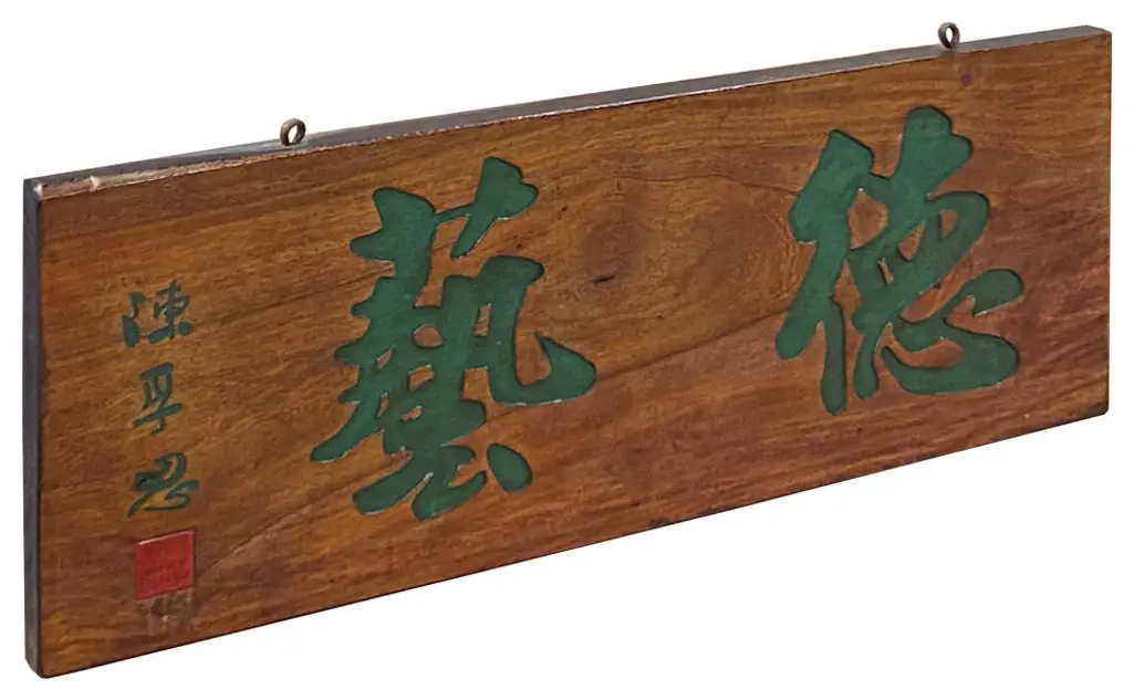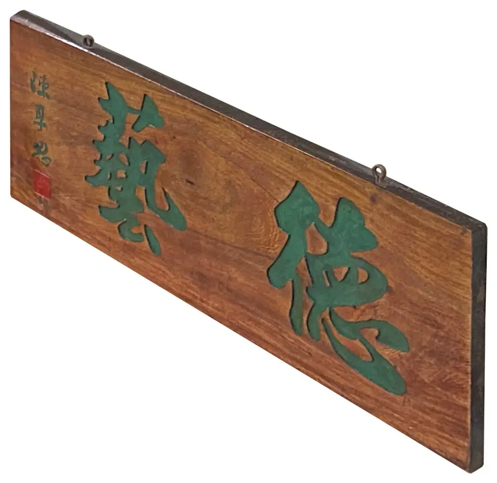 This exquisite piece is a traditional Chinese horizontal rectangular panel plaque, crafted for decorative purposes. Its compact size makes it a charming addition to your wall decor, lending an elegant touch to accentuate and enrich your living space. The relief characters read from right to left " Yi De " - means " Art Skill Practice Ethics ". Dimensions: w26"x h9.5" thickness 1"Origin: China Material: Wood Condition: Handmade, vintage-style finish, minor wood crack repair marks, as itFor all USA domestic continental customers (from 48 states), there is a flat shipping fee of $60, which includes insurance and handling charges. (Additional shipping charges apply to buyers from Hawaii, Alaska, US Islands, Florida Keywest, and Canada). If you are in the San Francisco Bay Area, we warmly encourage you to take advantage of our convenient in-store pick-up option at no extra cost. Please keep all original packing material and box if damage happens.