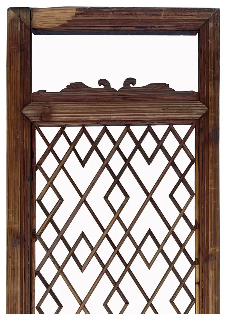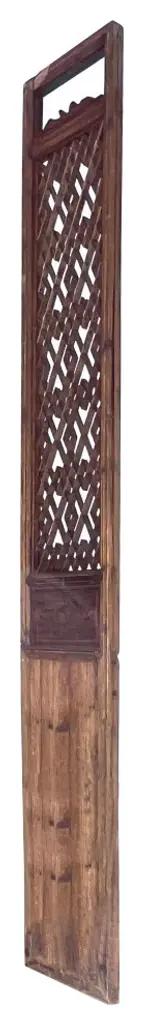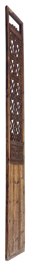 This was a door panel from an old Chinese house. The top is a broken open section, the center is an open window sector with a continuous geometric pattern motif. It is a charming piece as a wall decoration or as a room divider panel. Dimensions: w17.5"x h112" thickness 1.5"Origin: ChinaMaterial: Elm WoodCondition: Vintage finish, handmade, wood joint lines, rustic, wear-out marksWe offer a flat shipping fee of $380 for customers in the contiguous United States (48 states) for convenient curbside delivery. (Additional shipping costs will apply to customers in New York, Hawaii, Alaska, US Islands, Florida Keywest, or Canada, based on their specific location). The shipping cost includes insurance and handling charges for added protection.For customers in San Francisco or the Bay Area, we provide local delivery at a cost determined by the distance. You can find the exact cost by entering your zip code during checkout. Alternatively, you can pick up your order in-store with no extra shipping fee.If you need extra care and a white-glove experience, we offer a specialized service with a 4-8 week transit time, tailored to your destination. Contact us for a detailed quote on this service.Upon receiving your shipment, please carefully inspect the exterior packaging while the delivery personnel are present. Note any visible damage on the delivery paperwork, as carriers do not typically honor concealed damage claims. Your cooperation in documenting any visible damage is greatly appreciated