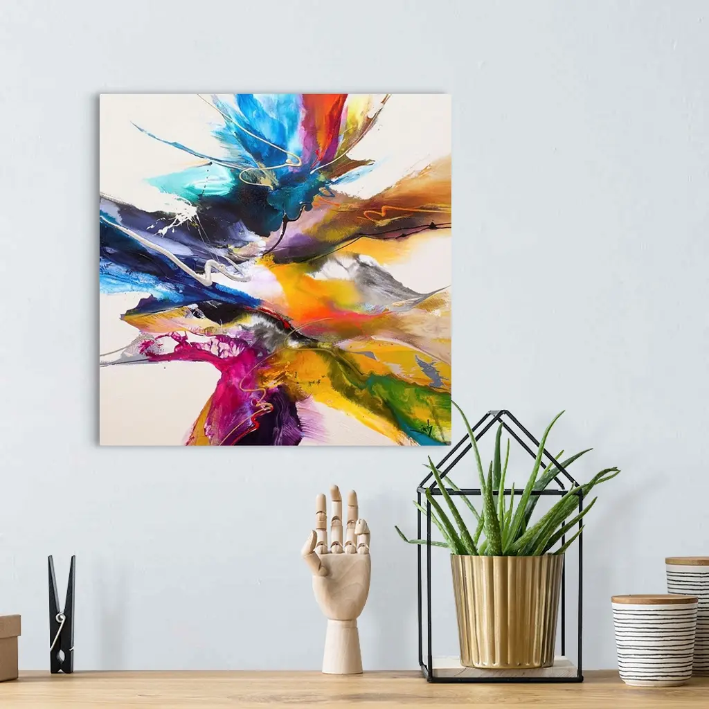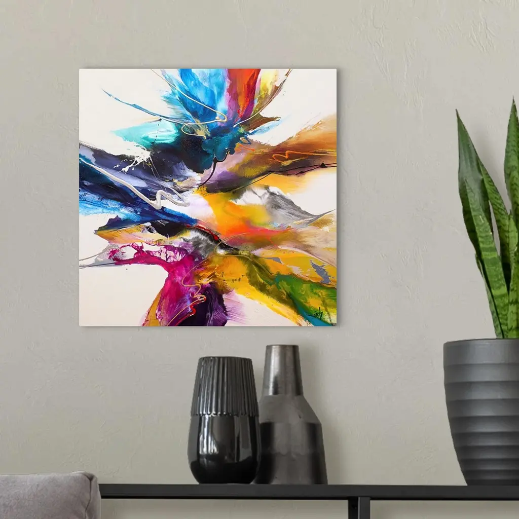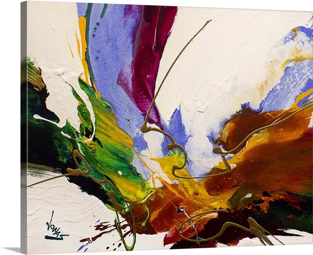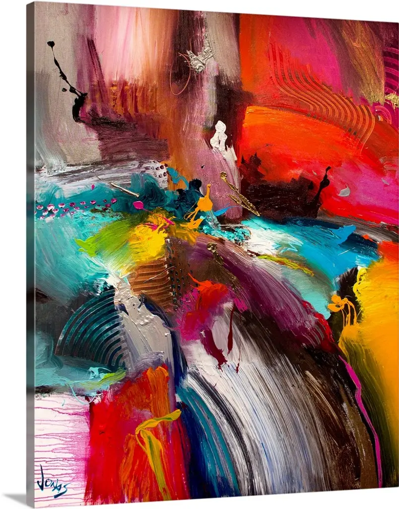 Contemporary abstract painting using a convergence of textures and tones spanning the gamut of color.