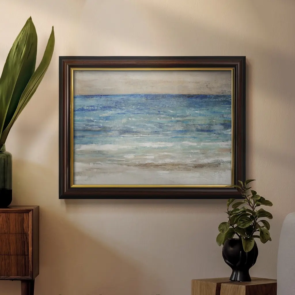 Choppy Water II Premium Framed Canvas- Ready to Hang A Premium Framed Canvas created to last. Framed in distressed wood and available in an array of sizes and colors Featuring a beveled a solid wood stretcher bar, each piece comes ready to hand 3 SIZES AVAILABLE 16''X20'' - Overall Size 18'X27'' - Overall Size 24''x36'' - Overall Size Each piece is made to order. Each piece comes with hanging hardware. Made in the USA Ready to Hang Giclee Paper Print Acrylic Glass Beveled Matt Board