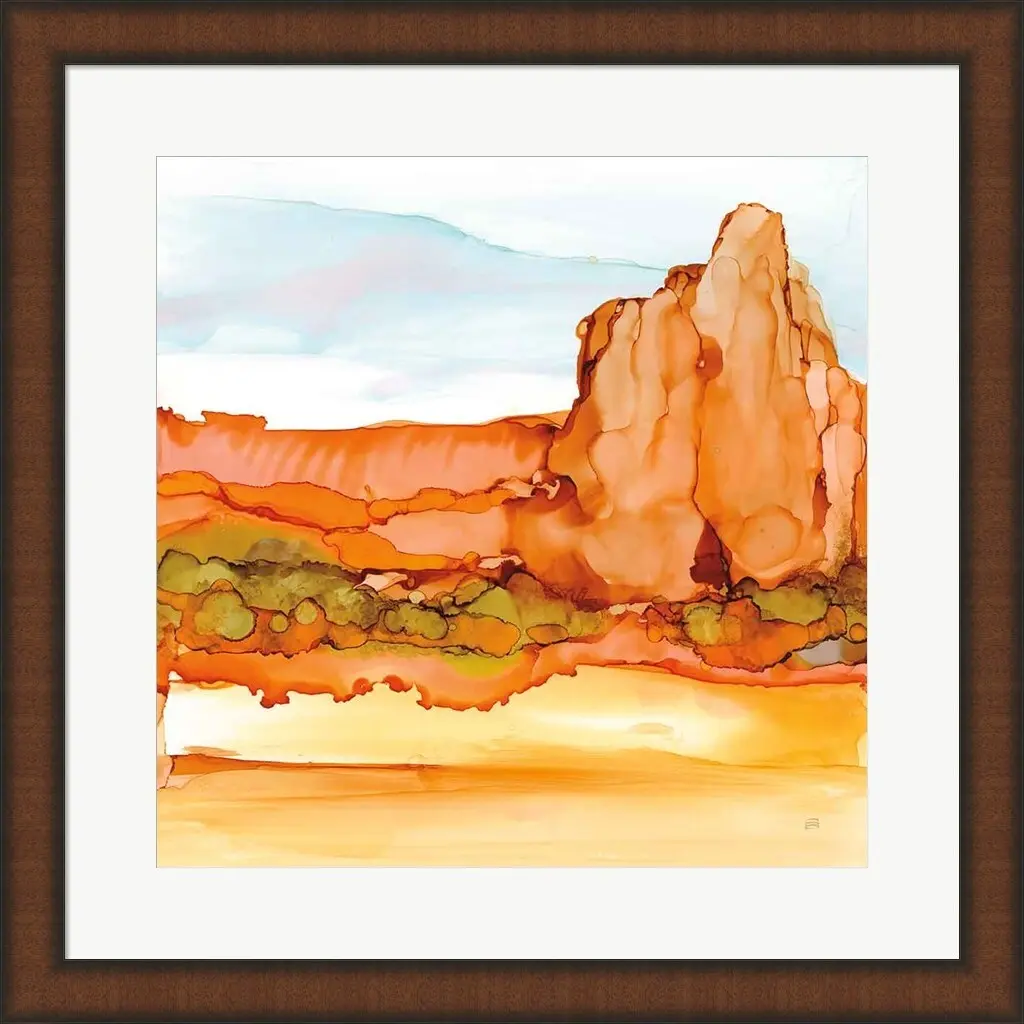 Desertscape VII by Chris Paschke is a high quality piece of framed artwork. The finished size of this piece is 19.75" X 19.75" with an image size of 14" X 14". It has a Slim Teak Espresso Brown Edges frame with a 2" white mat and is finished with high quality Glass. 100% Satisfaction Guaranteed.