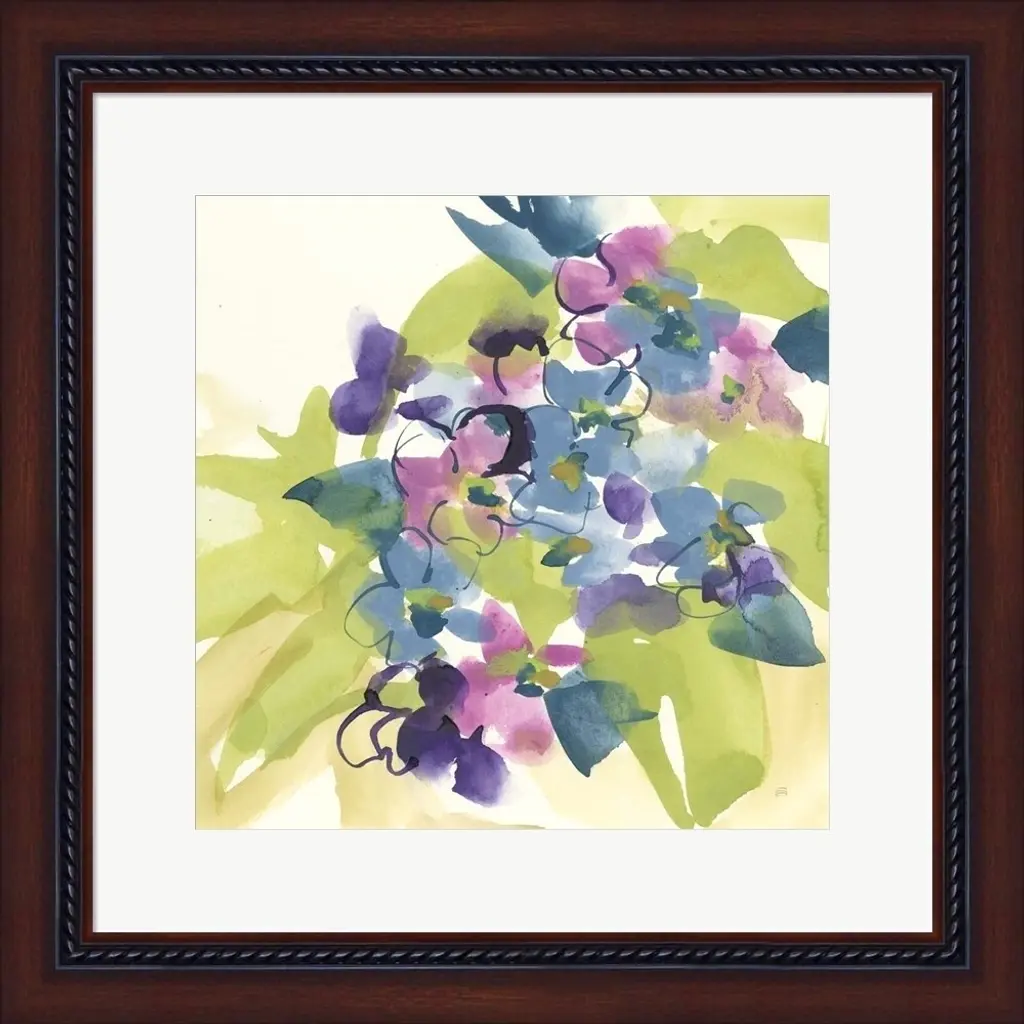 Spring Bouquet II by Chris Paschke is a high quality piece of framed artwork. The finished size of this piece is 22.25" X 22.25". It has a Brown Decorative Accent frame, is single matted and finished with high quality Acrylic Plexiglass.