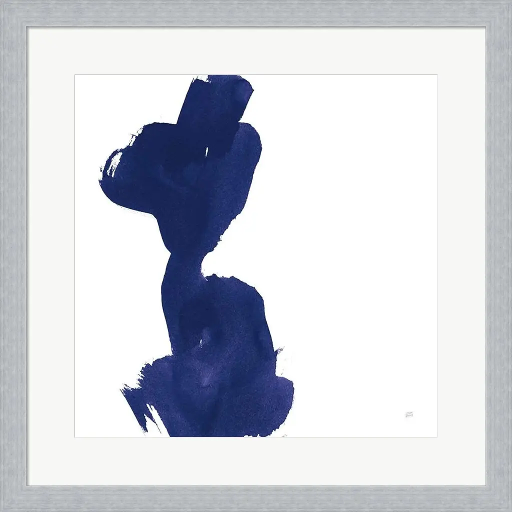 Swash I Indigo by Chris Paschke is a high quality piece of framed artwork. The finished size of this piece is 19.5" X 19.5". It has a Slim Platinum Silver frame, is single matted and finished with high quality Glass. 100% Satisfaction Guaranteed.