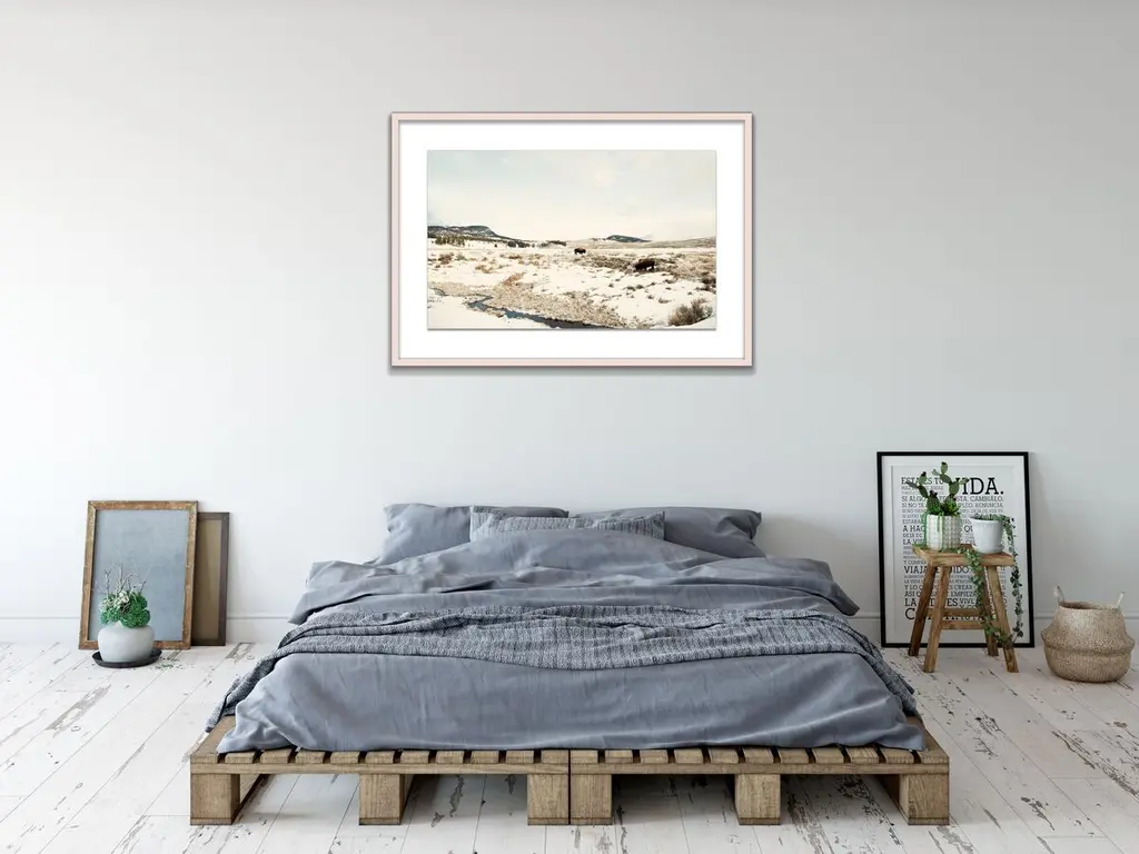This stunning image from Christine Flynn captures two bison as they roam and forage through a snow-covered valley in Yellowstone National Park. Printed on high-quality paper and displayed in a shadowbox frame, this piece arrives ready to hang.Christine Flynn is a Toronto-based artist whose work is influenced by both scenic rural imagery and everyday urban landscape. Her large-scale photography is infused with graphic elements, enhanced with added textures, and finished in high-gloss resin. The result is unique mixed media artwork - a culmination of Christine's keen eye, extensive global experiences, and innate love of nature and travel. In her most recent collections - North American Bison, Coast to Coast, and Urban Journey - Christine explores separate subject matter themes in each series while ultimately nurturing a sense of "seeing beauty in the ordinary" that represents the pervasive mood across all of her work. Christine's work has been widely exhibited in North America at art fairs such as Context Art Miami, and Scope, New York, as well as solo shows in Boston and Toronto galleries. Internationally, her work has been shown at major art fairs in London, Hamburg, and Paris.