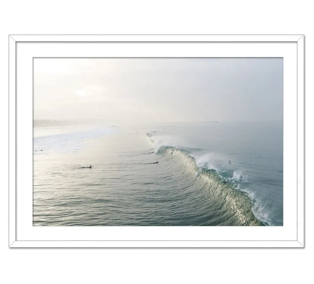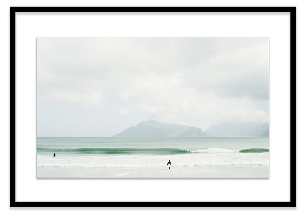 This transporting image from Christine Flynn captures surfers wading into South African waters with mountainous terrain in the distance. Printed on high-quality paper and displayed in a deep wood frame, this piece arrives ready to hang.Christine Flynn is a Toronto-based artist whose work is influenced by both scenic rural imagery and everyday urban landscape. Her large-scale photography is infused with graphic elements, enhanced with added textures, and finished in high-gloss resin. The result is unique mixed media artwork - a culmination of Christine's keen eye, extensive global experiences, and innate love of nature and travel. In her most recent collections - North American Bison, Coast to Coast, and Urban Journey - Christine explores separate subject matter themes in each series while ultimately nurturing a sense of "seeing beauty in the ordinary" that represents the pervasive mood across all of her work. Christine's work has been widely exhibited in North America at art fairs such as Context Art Miami, and Scope, New York, as well as solo shows in Boston and Toronto galleries. Internationally, her work has been shown at major art fairs in London, Hamburg, and Paris.
