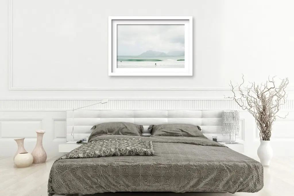 This transporting image from Christine Flynn captures surfers wading into South African waters with mountainous terrain in the distance. Printed on high-quality paper and displayed in a deep wood frame, this piece arrives ready to hang.Christine Flynn is a Toronto-based artist whose work is influenced by both scenic rural imagery and everyday urban landscape. Her large-scale photography is infused with graphic elements, enhanced with added textures, and finished in high-gloss resin. The result is unique mixed media artwork - a culmination of Christine's keen eye, extensive global experiences, and innate love of nature and travel. In her most recent collections - North American Bison, Coast to Coast, and Urban Journey - Christine explores separate subject matter themes in each series while ultimately nurturing a sense of "seeing beauty in the ordinary" that represents the pervasive mood across all of her work. Christine's work has been widely exhibited in North America at art fairs such as Context Art Miami, and Scope, New York, as well as solo shows in Boston and Toronto galleries. Internationally, her work has been shown at major art fairs in London, Hamburg, and Paris.