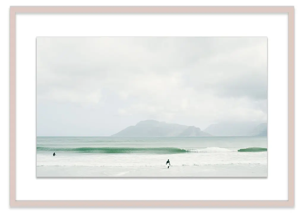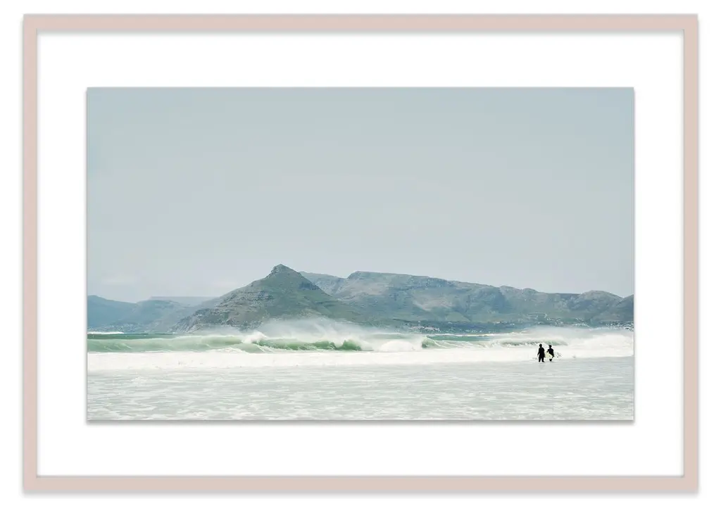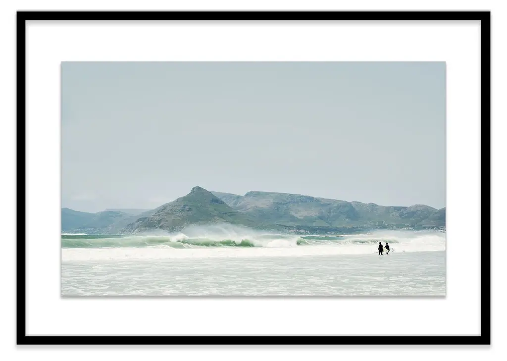 This transporting image from Christine Flynn captures surfers wading into South African waters with mountainous terrain in the distance. Printed on high-quality paper and displayed in a deep wood frame, this piece arrives ready to hang.Christine Flynn is a Toronto-based artist whose work is influenced by both scenic rural imagery and everyday urban landscape. Her large-scale photography is infused with graphic elements, enhanced with added textures, and finished in high-gloss resin. The result is unique mixed media artwork - a culmination of Christine's keen eye, extensive global experiences, and innate love of nature and travel. In her most recent collections - North American Bison, Coast to Coast, and Urban Journey - Christine explores separate subject matter themes in each series while ultimately nurturing a sense of "seeing beauty in the ordinary" that represents the pervasive mood across all of her work. Christine's work has been widely exhibited in North America at art fairs such as Context Art Miami, and Scope, New York, as well as solo shows in Boston and Toronto galleries. Internationally, her work has been shown at major art fairs in London, Hamburg, and Paris.