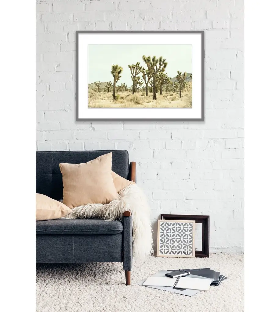 Seen first at One Kings Lane: This stunning image from Christine Flynn transports viewers to a serene landscape in the desert of Joshua Tree. Printed on high-quality watercolor paper and displayed in a white pine frame behind Plexiglas, this piece arrives ready to hang.Christine Flynn is a Toronto-based artist whose work is influenced by both scenic rural imagery and everyday urban landscape. Her large-scale photography is infused with graphic elements, enhanced with added textures, and finished in high-gloss resin. The result is unique mixed media artwork - a culmination of Christine's keen eye, extensive global experiences, and innate love of nature and travel. In her most recent collections - North American Bison, Coast to Coast, and Urban Journey - Christine explores separate subject matter themes in each series while ultimately nurturing a sense of "seeing beauty in the ordinary" that represents the pervasive mood across all of her work. Christine's work has been widely exhibited in North America at art fairs such as Context Art Miami, and Scope, New York, as well as solo shows in Boston and Toronto galleries. Internationally, her work has been shown at major art fairs in London, Hamburg, and Paris.