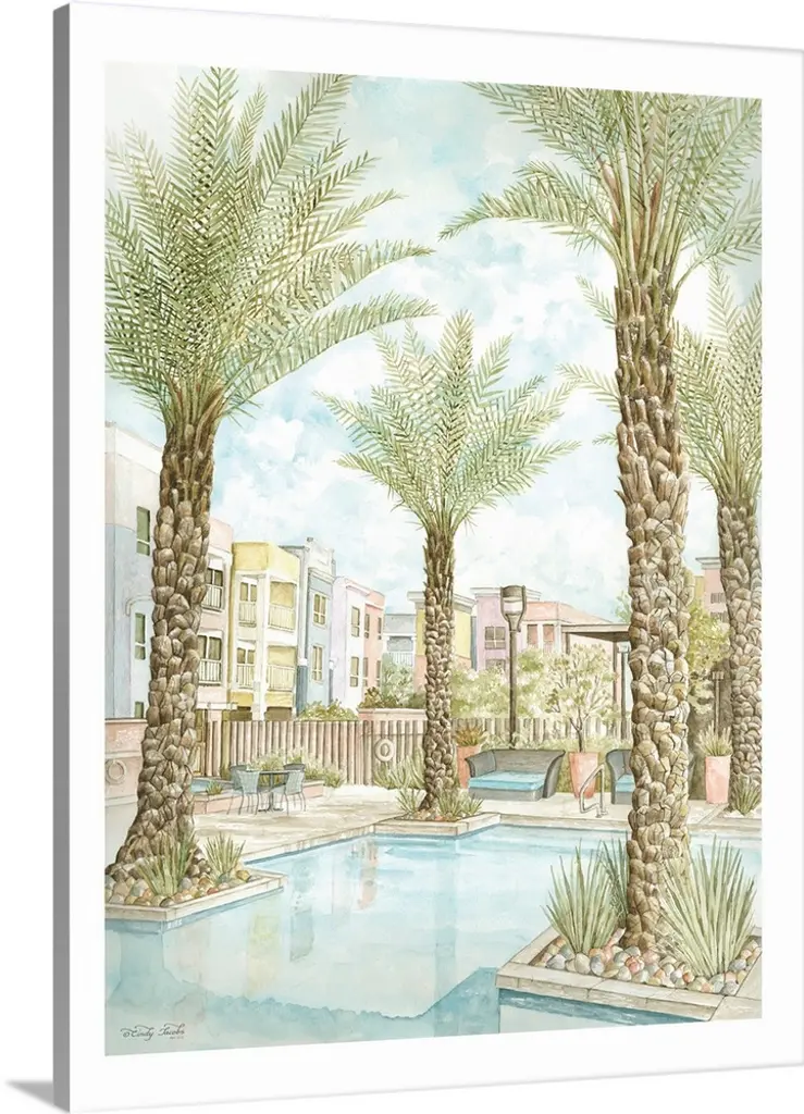 This image from Christine Flynn captures a pool's reflection and its stunning surrounding landscape. Printed on fine-art paper and beautifully framed, this piece arrives ready to hang.Christine Flynn is a Toronto-based artist whose work is influenced by both scenic rural imagery and everyday urban landscape. Her large-scale photography is infused with graphic elements, enhanced with added textures, and finished in high-gloss resin. The result is unique mixed media artwork - a culmination of Christine's keen eye, extensive global experiences, and innate love of nature and travel. In her most recent collections - North American Bison, Coast to Coast, and Urban Journey - Christine explores separate subject matter themes in each series while ultimately nurturing a sense of "seeing beauty in the ordinary" that represents the pervasive mood across all of her work. Christine's work has been widely exhibited in North America at art fairs such as Context Art Miami, and Scope, New York, as well as solo shows in Boston and Toronto galleries. Internationally, her work has been shown at major art fairs in London, Hamburg, and Paris.
