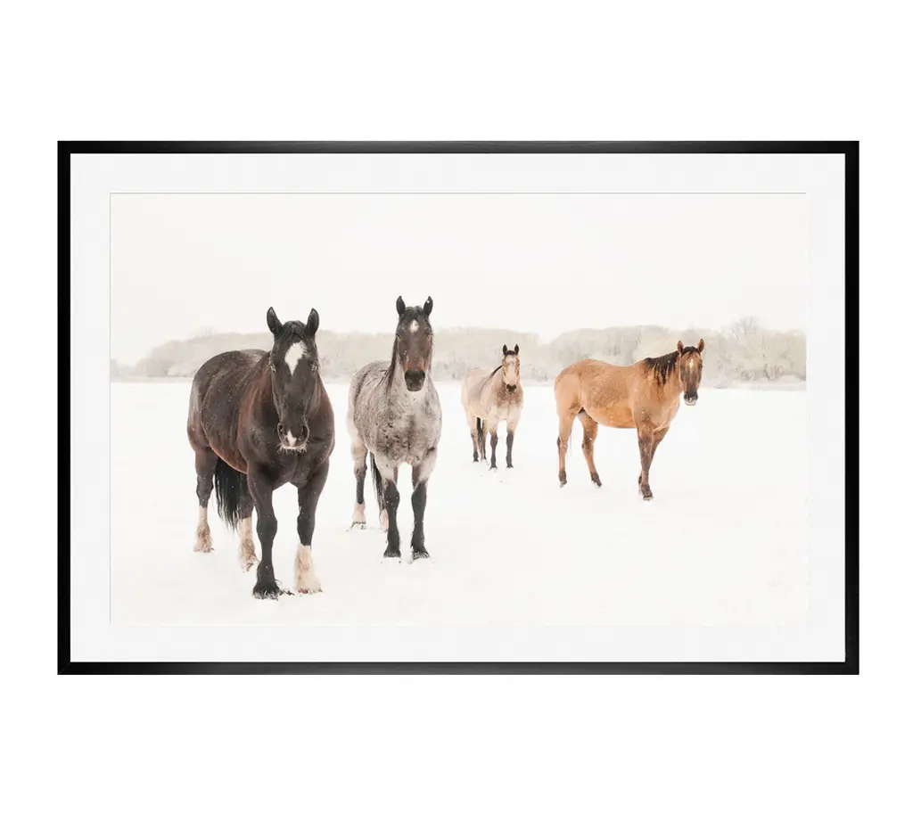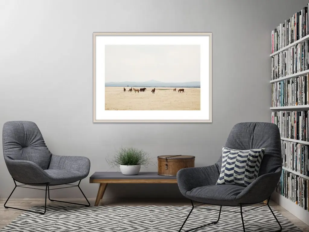 This stunning image from Christine Flynn captures wild horses on an open plain with rolling mountains in the distance. Printed on fine-art paper and beautifully framed, this piece arrives ready to hang.Christine Flynn is a Toronto-based artist whose work is influenced by both scenic rural imagery and everyday urban landscape. Her large-scale photography is infused with graphic elements, enhanced with added textures, and finished in high-gloss resin. The result is unique mixed media artwork - a culmination of Christine's keen eye, extensive global experiences, and innate love of nature and travel. In her most recent collections - North American Bison, Coast to Coast, and Urban Journey - Christine explores separate subject matter themes in each series while ultimately nurturing a sense of "seeing beauty in the ordinary" that represents the pervasive mood across all of her work. Christine's work has been widely exhibited in North America at art fairs such as Context Art Miami, and Scope, New York, as well as solo shows in Boston and Toronto galleries. Internationally, her work has been shown at major art fairs in London, Hamburg, and Paris.