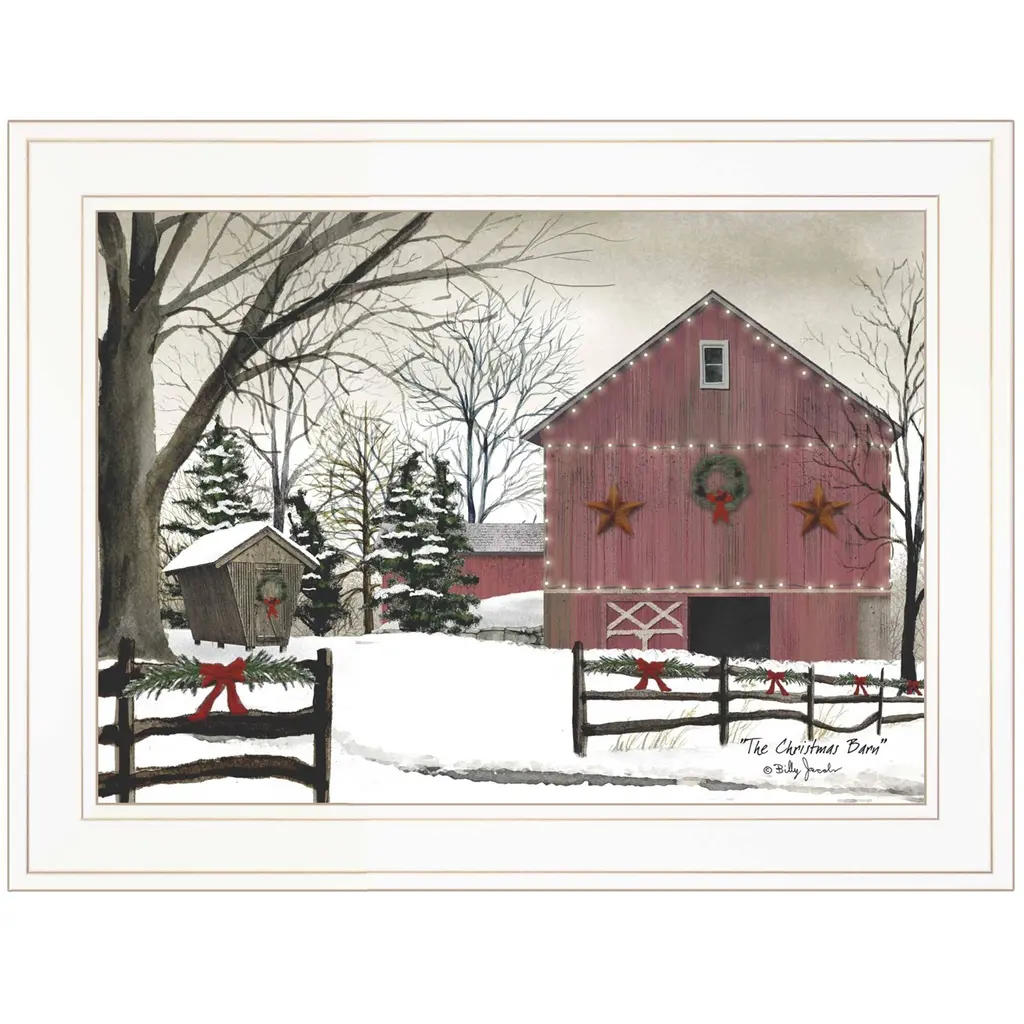 This christmas barn 1 white framed print wall art is the perfect way to celebrate and decorate for the Christmas Season. This print is a visual artistic expression that allows you to decorate your space in style. Reproduced for you on paper, this hanging decorative accent will be a trendy and fashionable way to dress your walls. Hang on your wall to add some up to date fashion and decoration. Instantly liven up your space with this art that brings color and dimension to your walls. 15" H x 19" W x 1" D