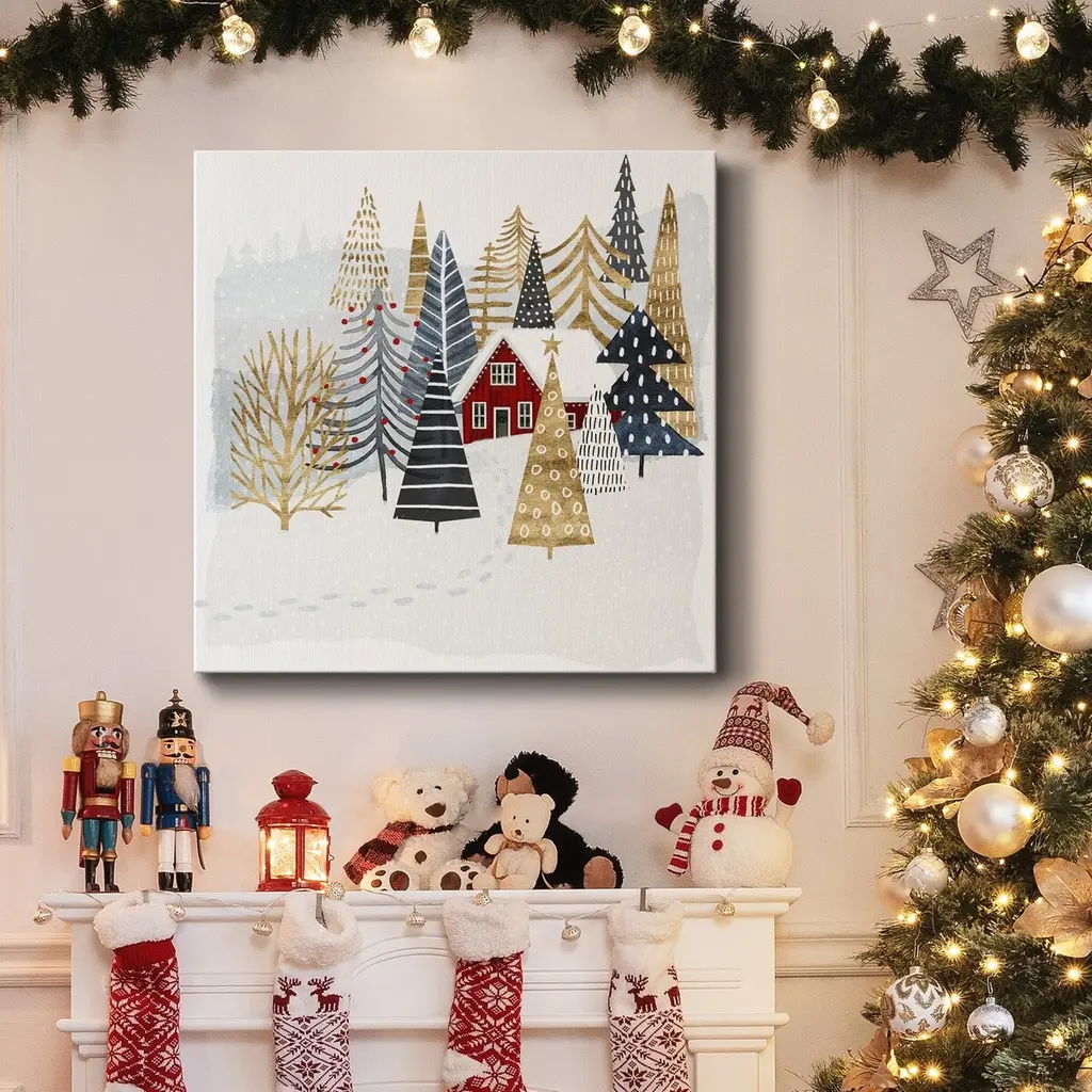 Christmas Chalet I-Premium Gallery Wrapped Canvas - Ready to Hang A premium hand stretched gallery wrapped canvas print created to last. Featuring a beveled a solid wood stretcher bar, each piece comes ready to hand 5 SIZES AVAILABLE 10''X10'' - Overall Size 16''x16'' - Overall Size 24''x24'' - Overall Size 32''x32'' - Overall Size 40''x40'' - Overall Size Each piece is made to order. Built to Last Each piece comes ready to hang Solid wood stretcher Fade and Water resistant Made domestically