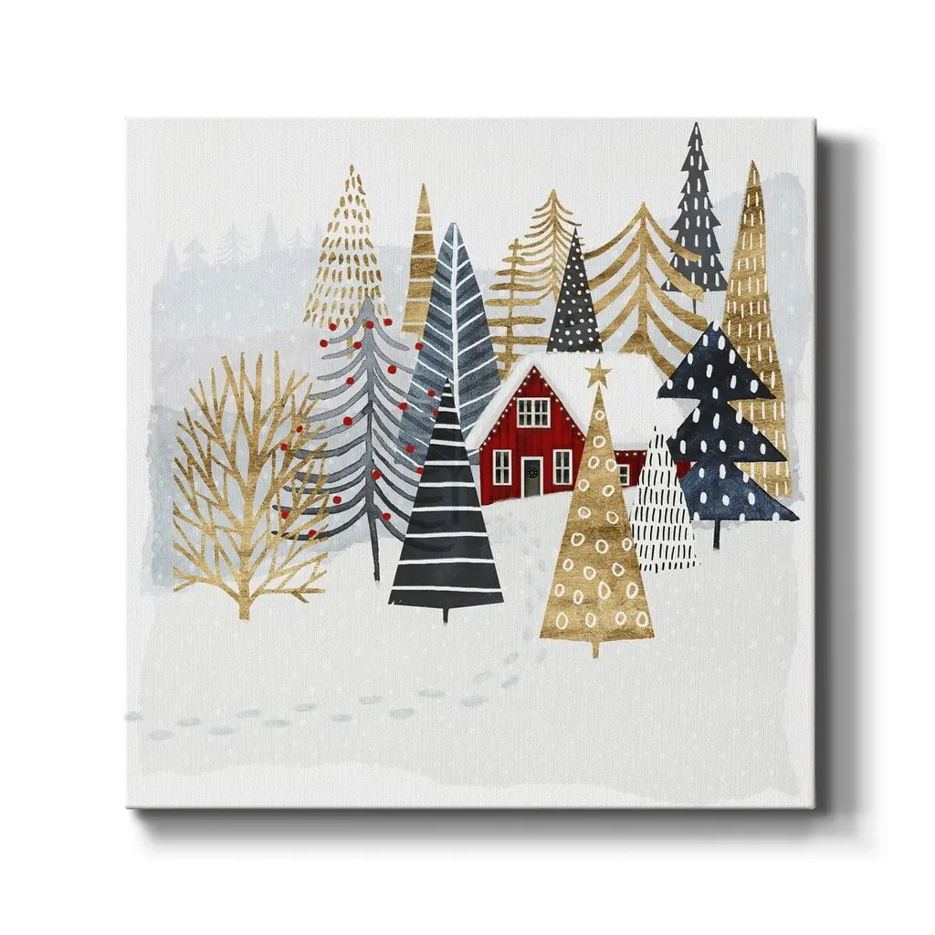 Christmas Chalet I-Premium Gallery Wrapped Canvas - Ready to Hang A premium hand stretched gallery wrapped canvas print created to last. Featuring a beveled a solid wood stretcher bar, each piece comes ready to hand 5 SIZES AVAILABLE 10''X10'' - Overall Size 16''x16'' - Overall Size 24''x24'' - Overall Size 32''x32'' - Overall Size 40''x40'' - Overall Size Each piece is made to order. Built to Last Each piece comes ready to hang Solid wood stretcher Fade and Water resistant Made domestically