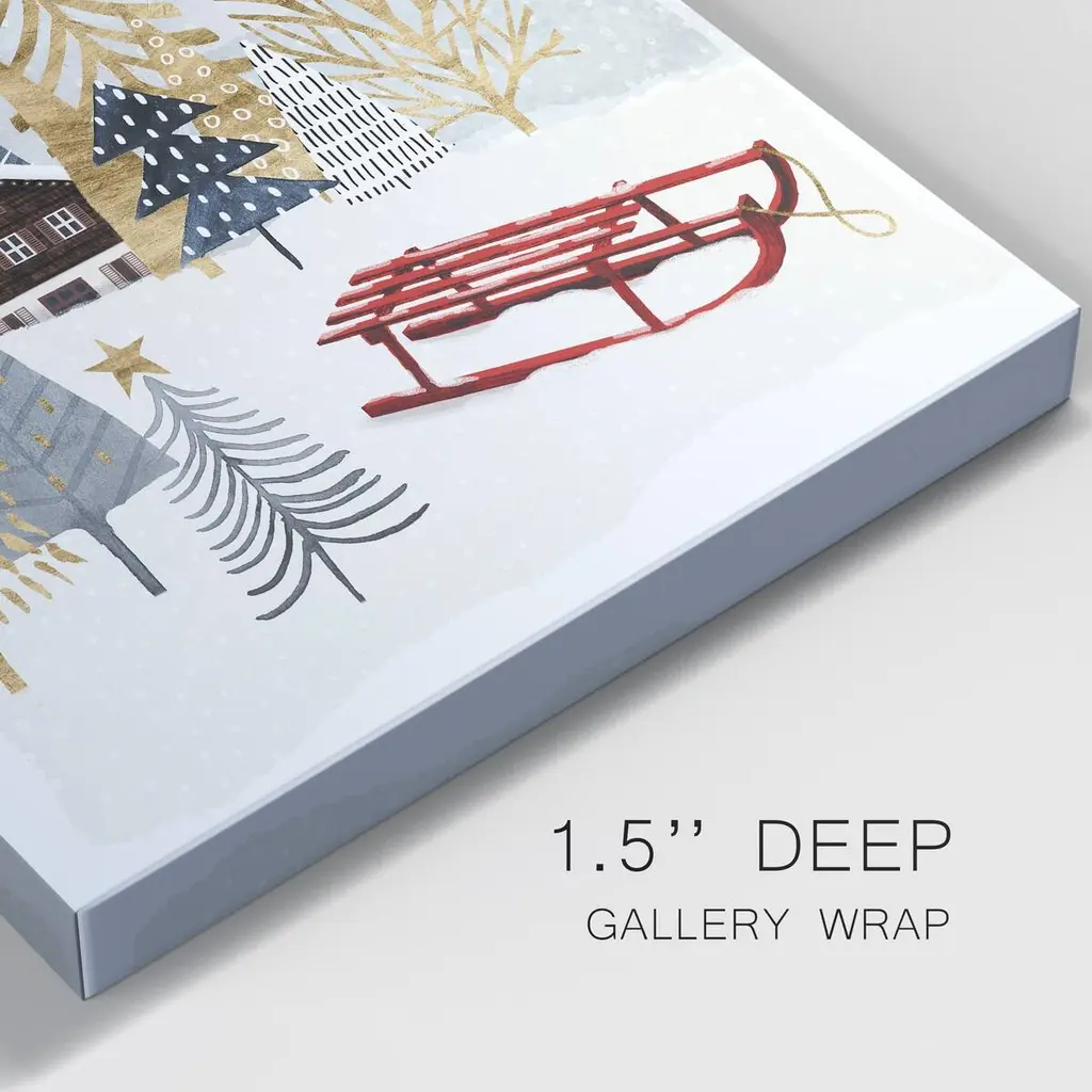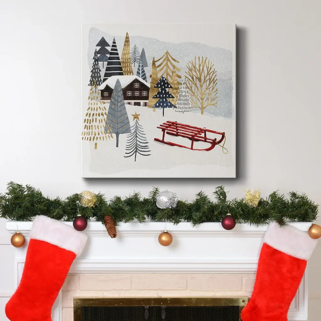 Christmas Chalet II-Premium Gallery Wrapped Canvas - Ready to Hang A premium hand stretched gallery wrapped canvas print created to last. Featuring a beveled a solid wood stretcher bar, each piece comes ready to hand 5 SIZES AVAILABLE 10''X10'' - Overall Size 16''x16'' - Overall Size 24''x24'' - Overall Size 32''x32'' - Overall Size 40''x40'' - Overall Size Each piece is made to order. Built to Last Each piece comes ready to hang Solid wood stretcher Fade and Water resistant Made domestically