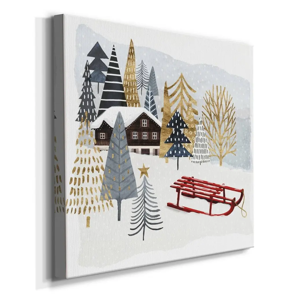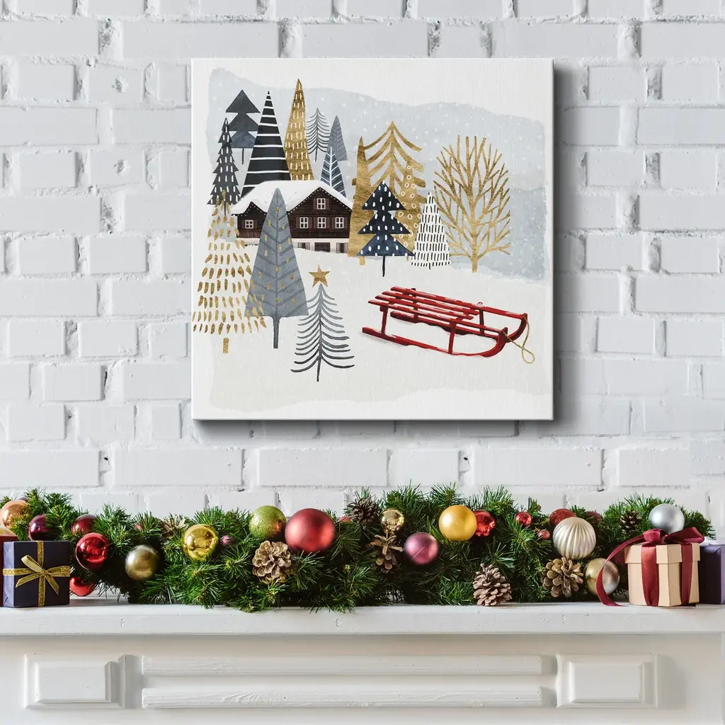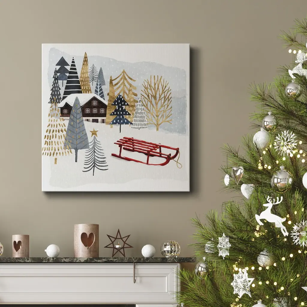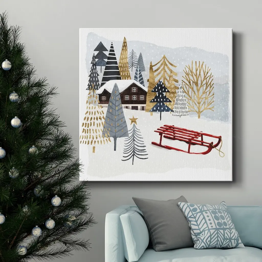 Christmas Chalet II-Premium Gallery Wrapped Canvas - Ready to Hang A premium hand stretched gallery wrapped canvas print created to last. Featuring a beveled a solid wood stretcher bar, each piece comes ready to hand 5 SIZES AVAILABLE 10''X10'' - Overall Size 16''x16'' - Overall Size 24''x24'' - Overall Size 32''x32'' - Overall Size 40''x40'' - Overall Size Each piece is made to order. Built to Last Each piece comes ready to hang Solid wood stretcher Fade and Water resistant Made domestically