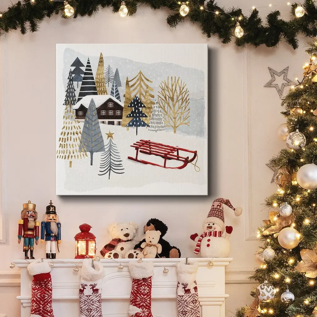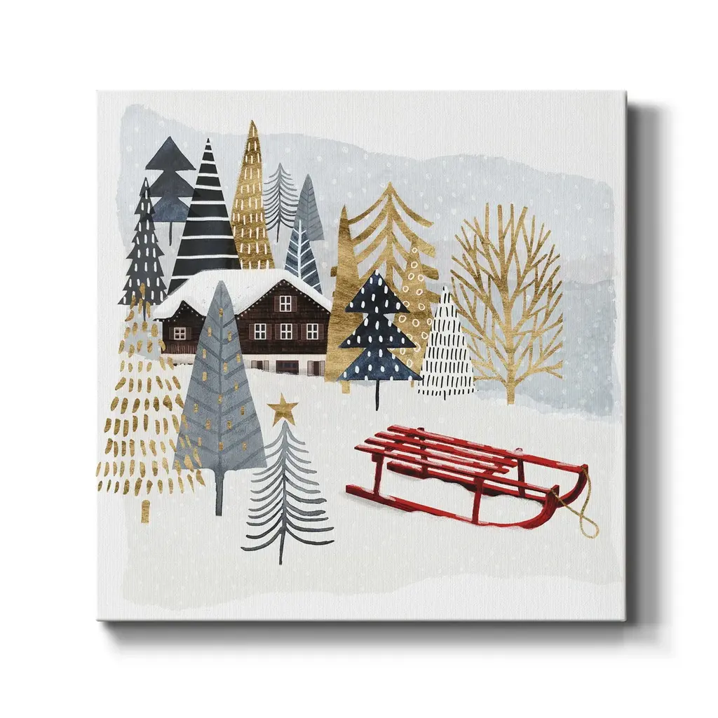 Christmas Chalet II-Premium Gallery Wrapped Canvas - Ready to Hang A premium hand stretched gallery wrapped canvas print created to last. Featuring a beveled a solid wood stretcher bar, each piece comes ready to hand 5 SIZES AVAILABLE 10''X10'' - Overall Size 16''x16'' - Overall Size 24''x24'' - Overall Size 32''x32'' - Overall Size 40''x40'' - Overall Size Each piece is made to order. Built to Last Each piece comes ready to hang Solid wood stretcher Fade and Water resistant Made domestically