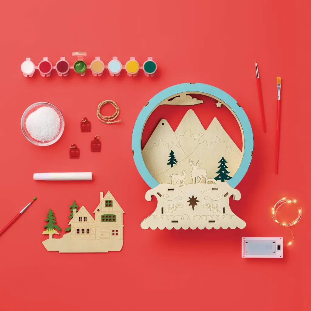 Christmas Craft Lit Layered Wood Snow Globe Painting Kit - Mondo Llama™