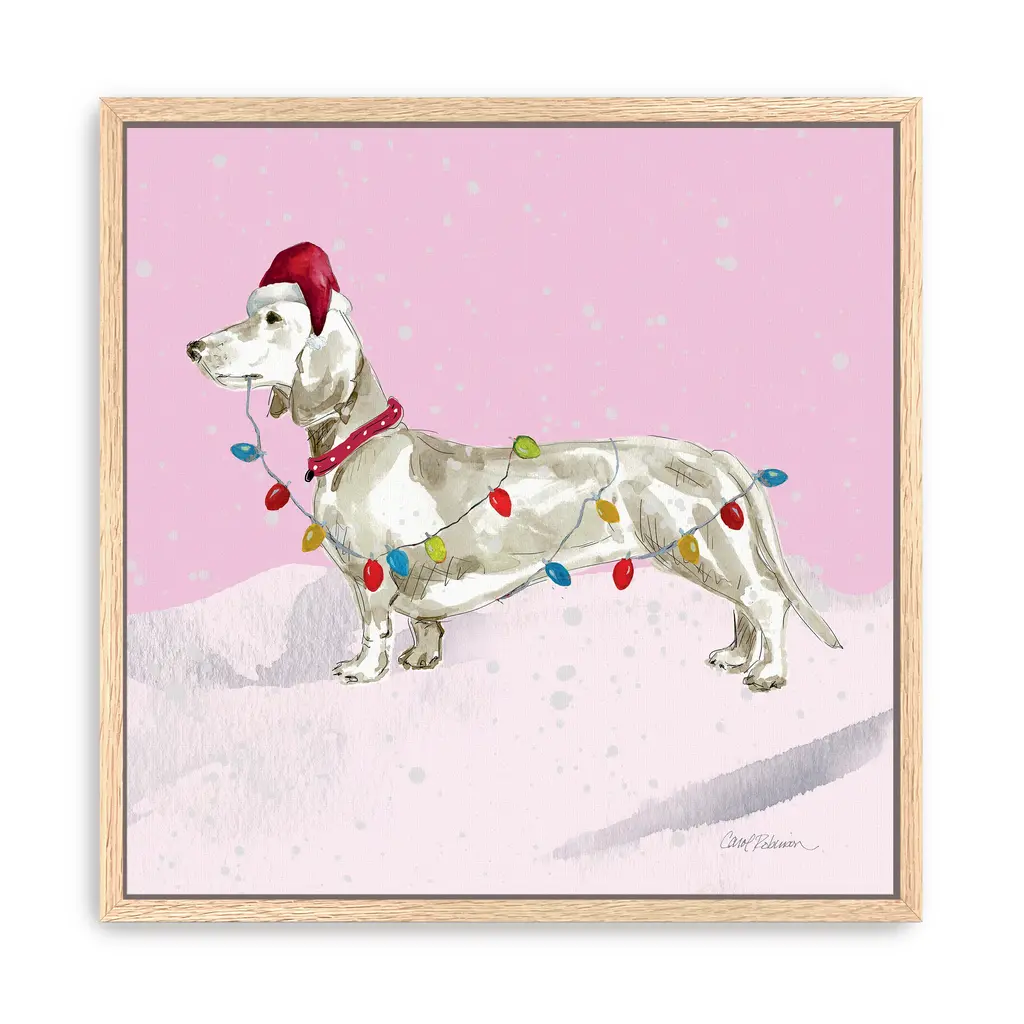 Christmas Dachshund Canvas Giclee I - Framed / Dark Walnut / 20x20