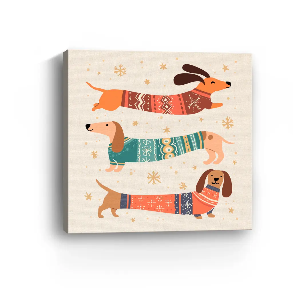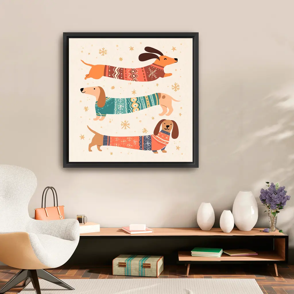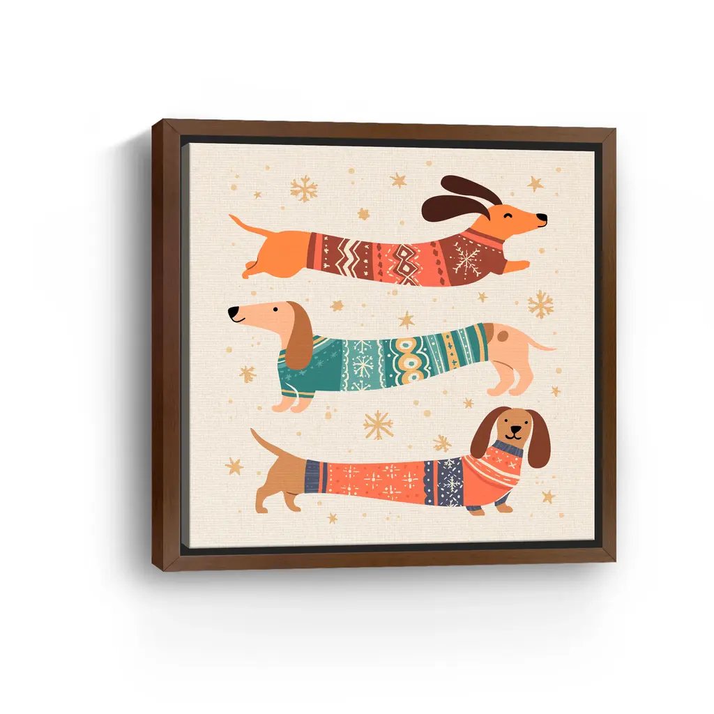 Christmas Dachshund Canvas Giclee Ii - Framed / Dark Walnut / 40x40