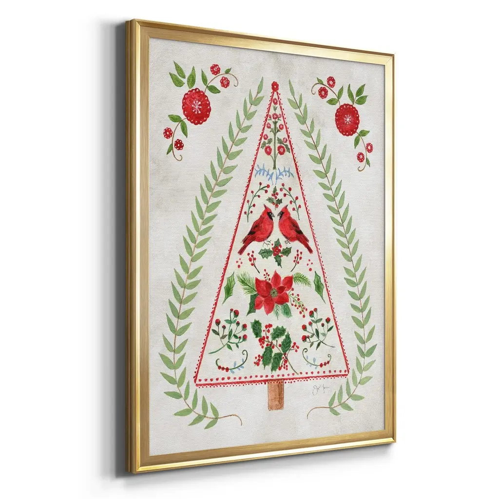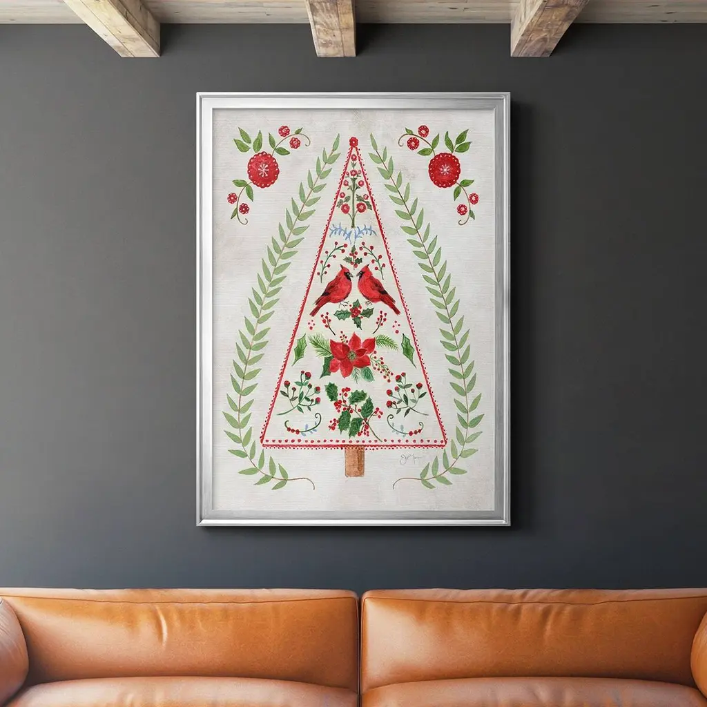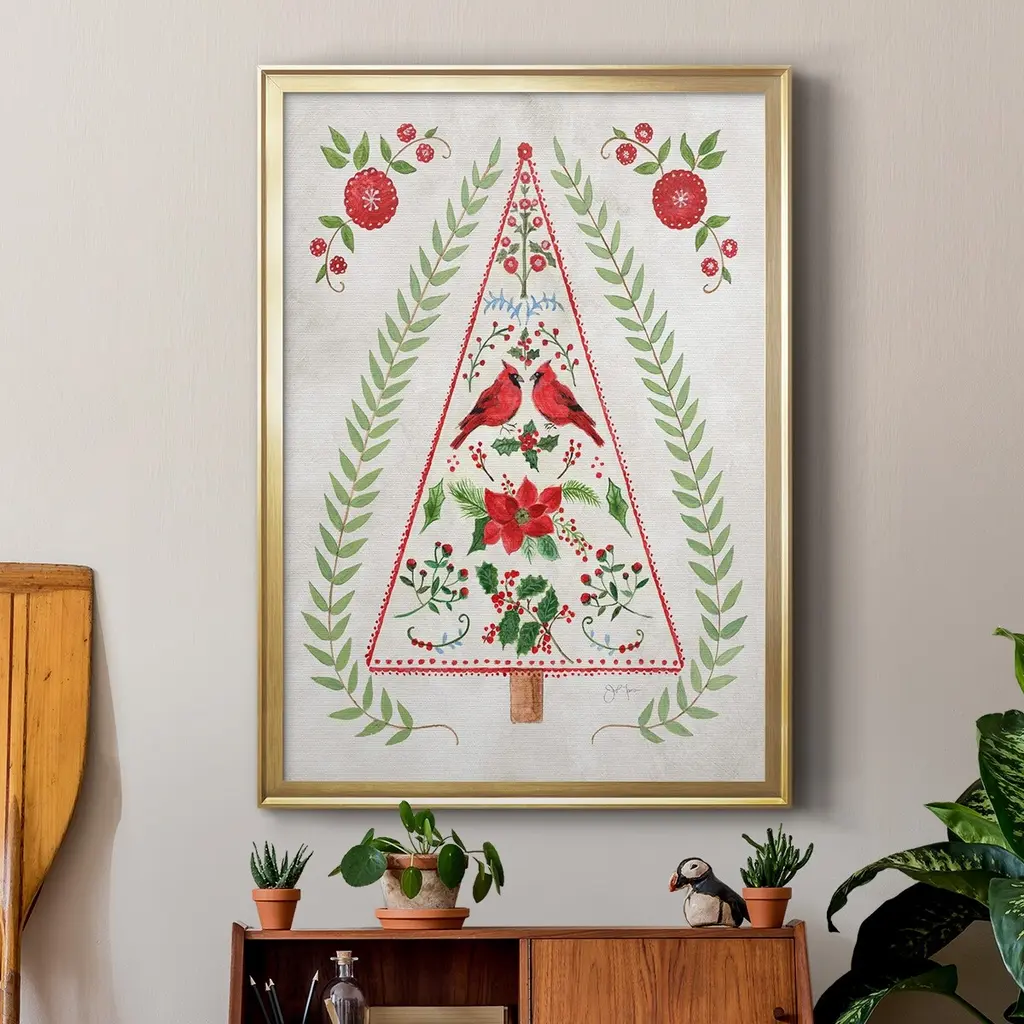 Christmas Folk Tree Premium Framed Print - Ready to Hang A Premium Framed Print created to last. Framed in distressed wood and available in an array of sizes and colors Featuring a beveled a solid wood stretcher bar, each piece comes ready to hand 4 SIZES AVAILABLE 30.5''X42.5'' - Overall Size 26.5'X36.5'' - Overall Size 22.5''x30.5'' - Overall Size 18.5''x24.5'' - Overall Size Each piece is made to order. Each piece comes with hanging hardware. Made in the USA Ready to Hang