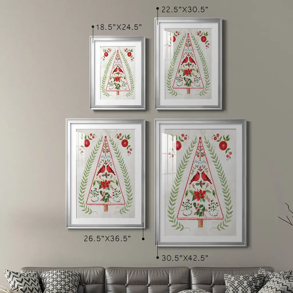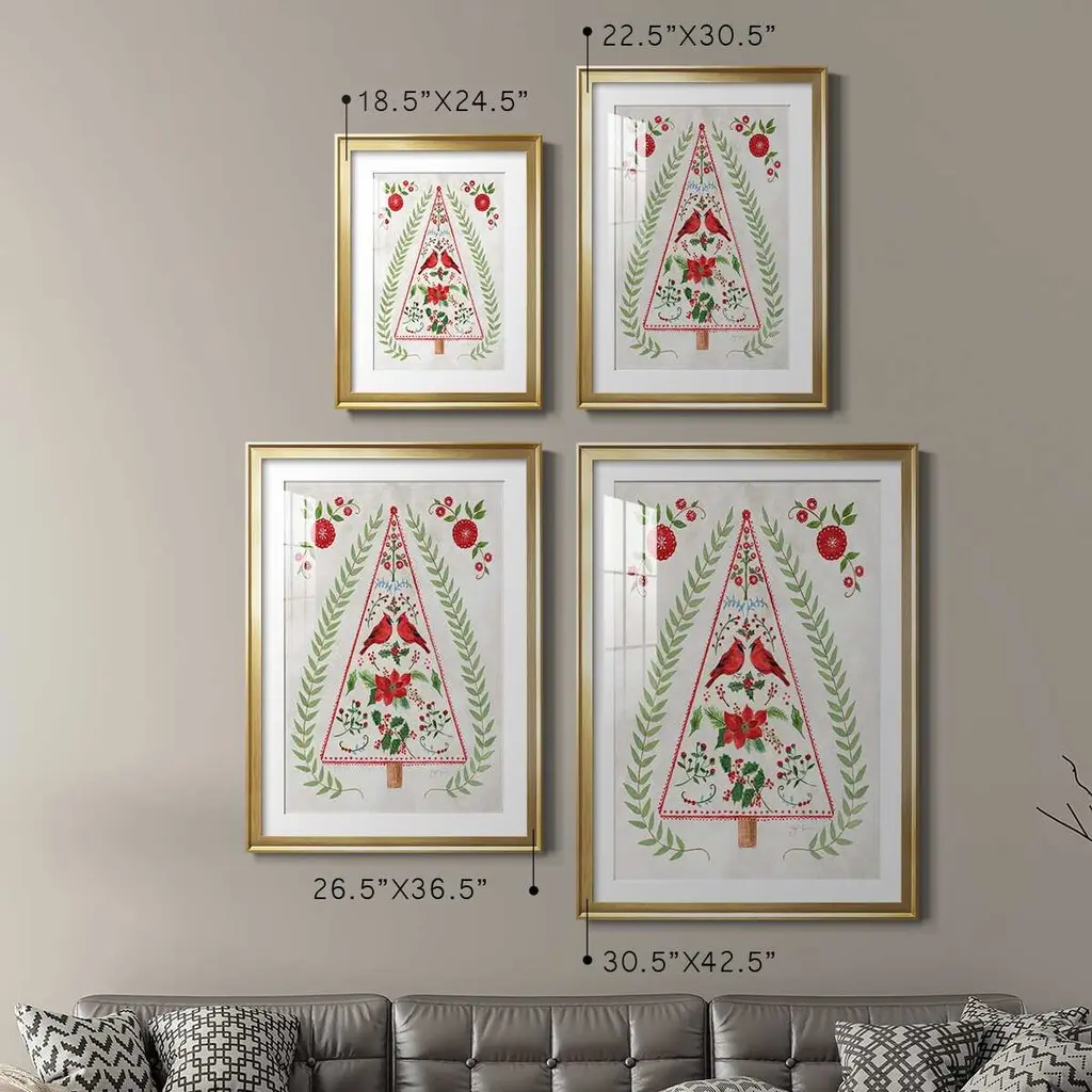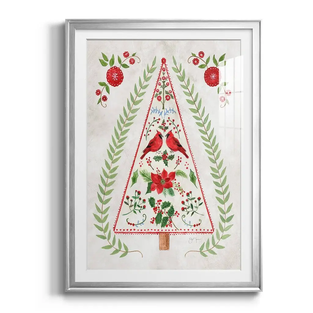 Christmas Folk Tree Premium Framed Print - Ready to Hang A Premium Framed Print created to last. Framed in distressed wood and available in an array of sizes and colors Featuring a beveled a solid wood stretcher bar, each piece comes ready to hand 4 SIZES AVAILABLE 30.5''X42.5'' - Overall Size 26.5'X36.5'' - Overall Size 22.5''x30.5'' - Overall Size 18.5''x24.5'' - Overall Size Each piece is made to order. Each piece comes with hanging hardware. Made in the USA Ready to Hang Giclee Paper Print Acrylic Glass Beveled Matt Board