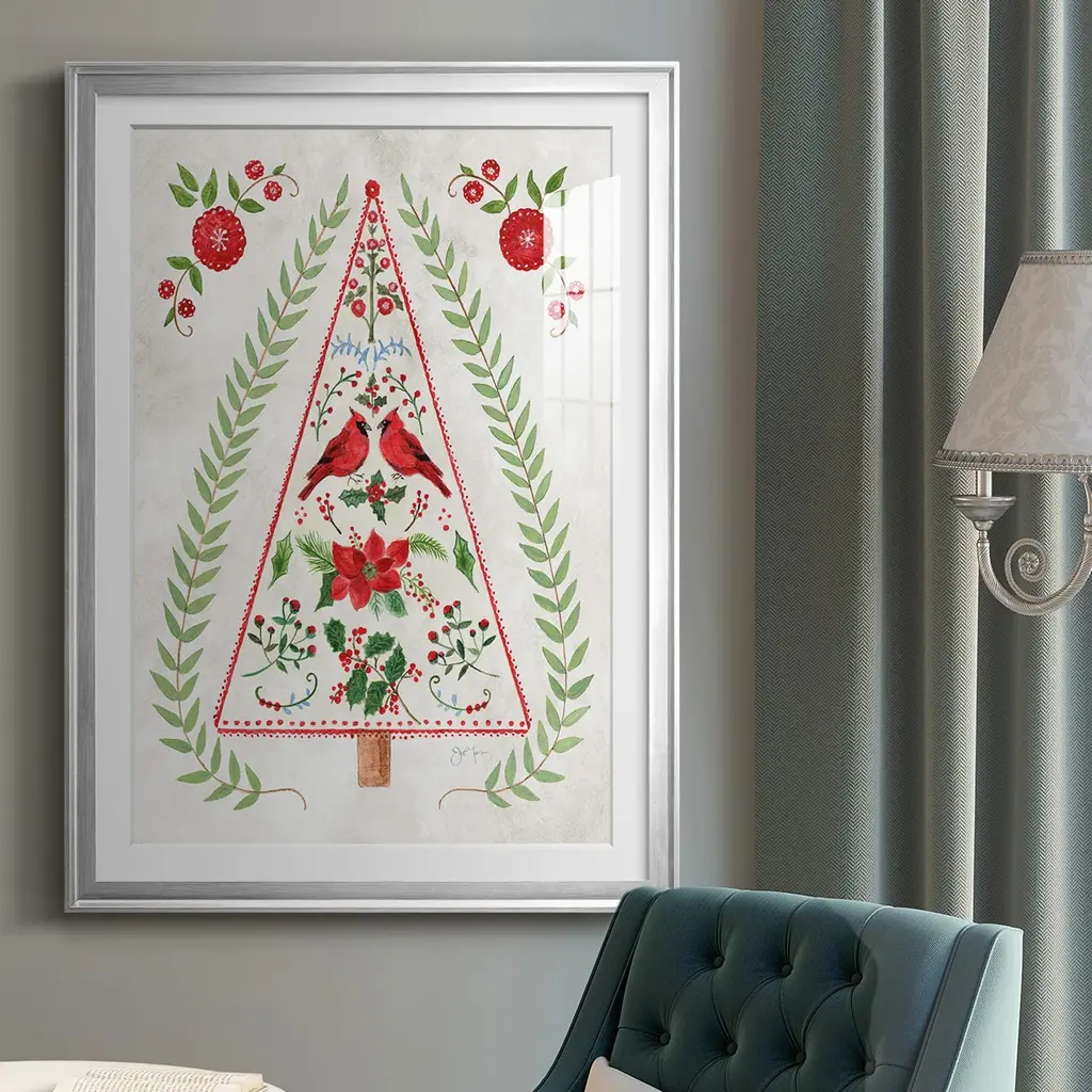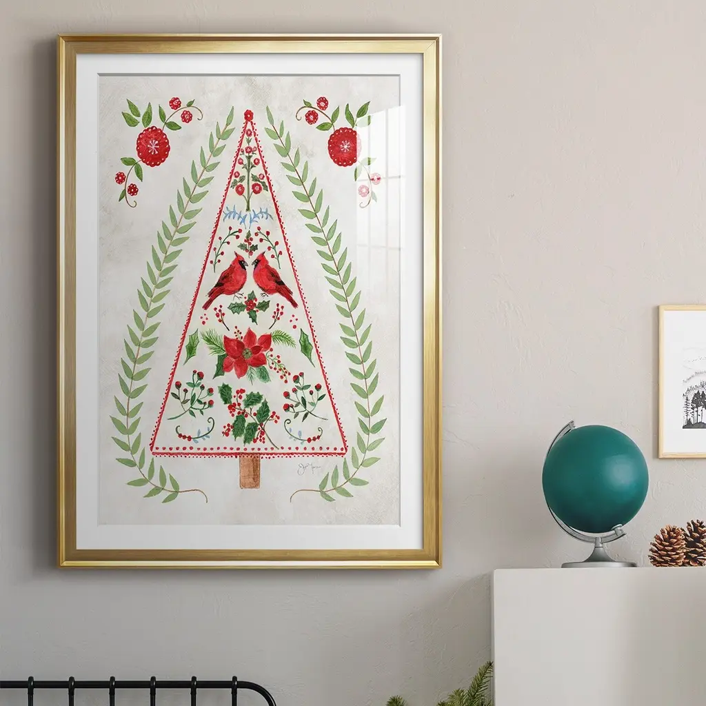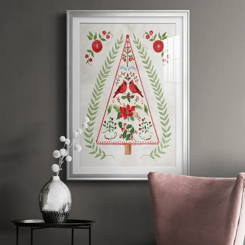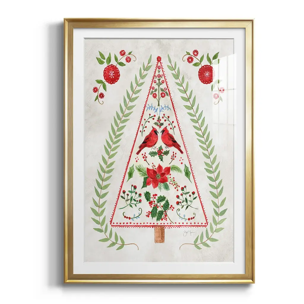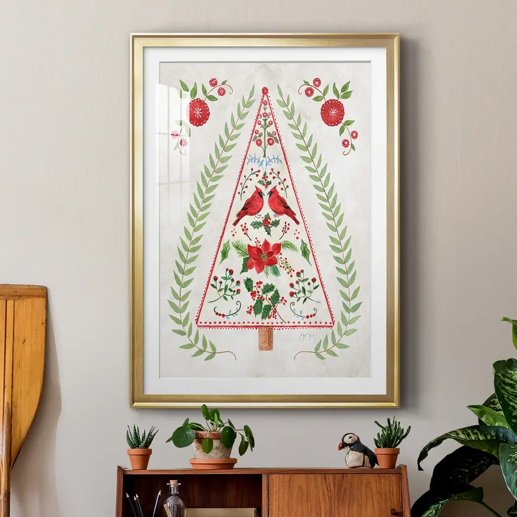 Christmas Folk Tree Premium Framed Print - Ready to Hang A Premium Framed Print created to last. Framed in distressed wood and available in an array of sizes and colors Featuring a beveled a solid wood stretcher bar, each piece comes ready to hand 4 SIZES AVAILABLE 30.5''X42.5'' - Overall Size 26.5'X36.5'' - Overall Size 22.5''x30.5'' - Overall Size 18.5''x24.5'' - Overall Size Each piece is made to order. Each piece comes with hanging hardware. Made in the USA Ready to Hang Giclee Paper Print Acrylic Glass Beveled Matt Board