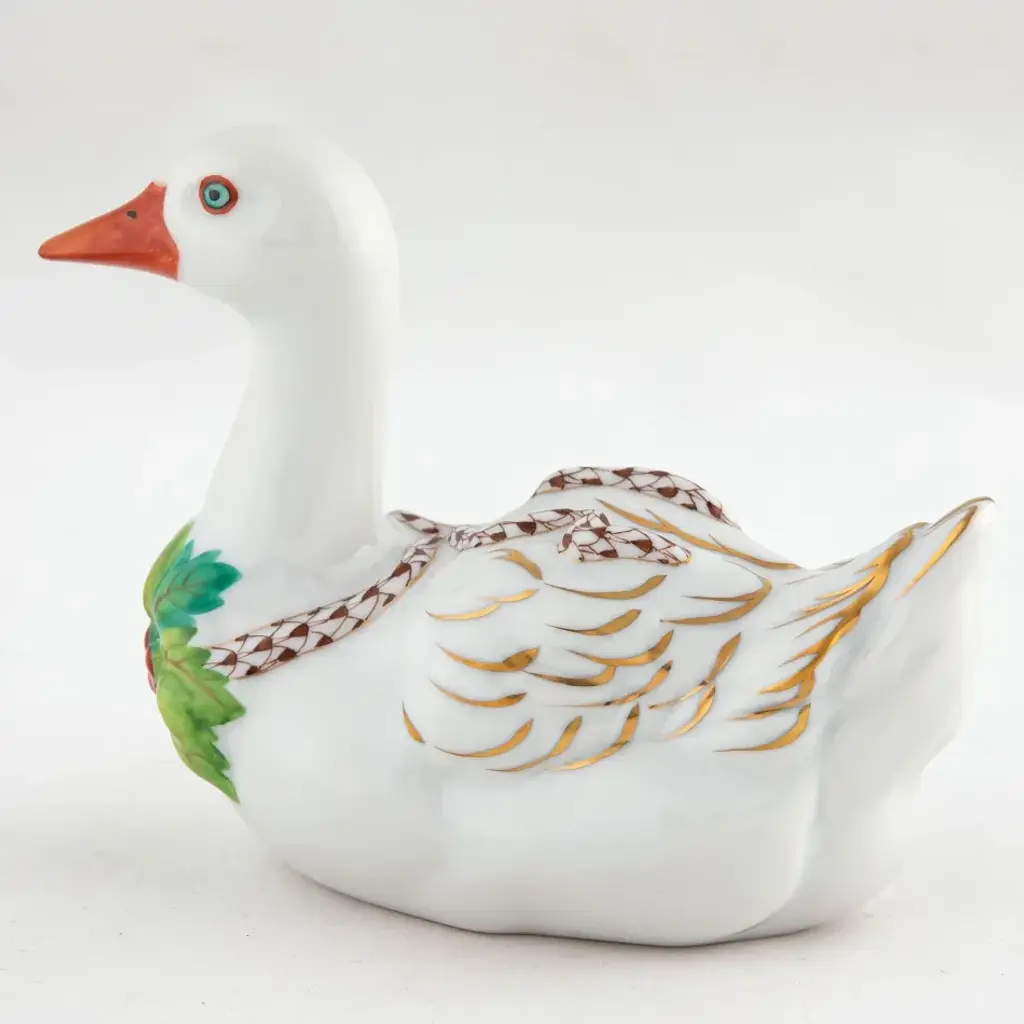 Endearing animals meek and bold, large and small, demure and majestic eagerly await the chance to melt your heart and warm your home. Each is brought to life by the skilled hands of artisans crafting and painting these charming porcelain creatures. The famous fishnet decor adorning many of the animals took form in 1858 when a Herend painter became inspired by a fishscale design he saw on a Chinese porcelain plate and painted a similar pattern onto a rooster figurine to imitate feathers. The rest is history, with the fishnet design now a Herend signature prized worldwide. Now the biggest porcelain manufactory in Europe, Herend was founded in 1826 to produce earthenware in the small Hungarian village for which it was named. At the time, Hungary was flooded with low-cost pottery, but in 1839, Mor Fischer became the Manufactory’s new owner and he decided to focus on producing dinnerware replacement pieces for Europe’s royal families to complement their valuable porcelain patterns from Germany and the Far East. As his client base grew, Fischer commissioned his artists to begin designing dinnerware patterns of their own. Queen Victoria’s 1851 purchase of a large set for Windsor Castle was a milestone, setting the stage for aristocrats throughout Europe to clamor for Herend in their estates. In the 1850s, Herend added meticulously-crafted figurines to its creations. Herend’s trademark fishnet pattern, which is widely recognized and prized as Herend’s signature design, started in 1858 when an artist who was intrigued with a Chinese plate’s fish scale design painted it onto a rooster figurine to imitate feathers.