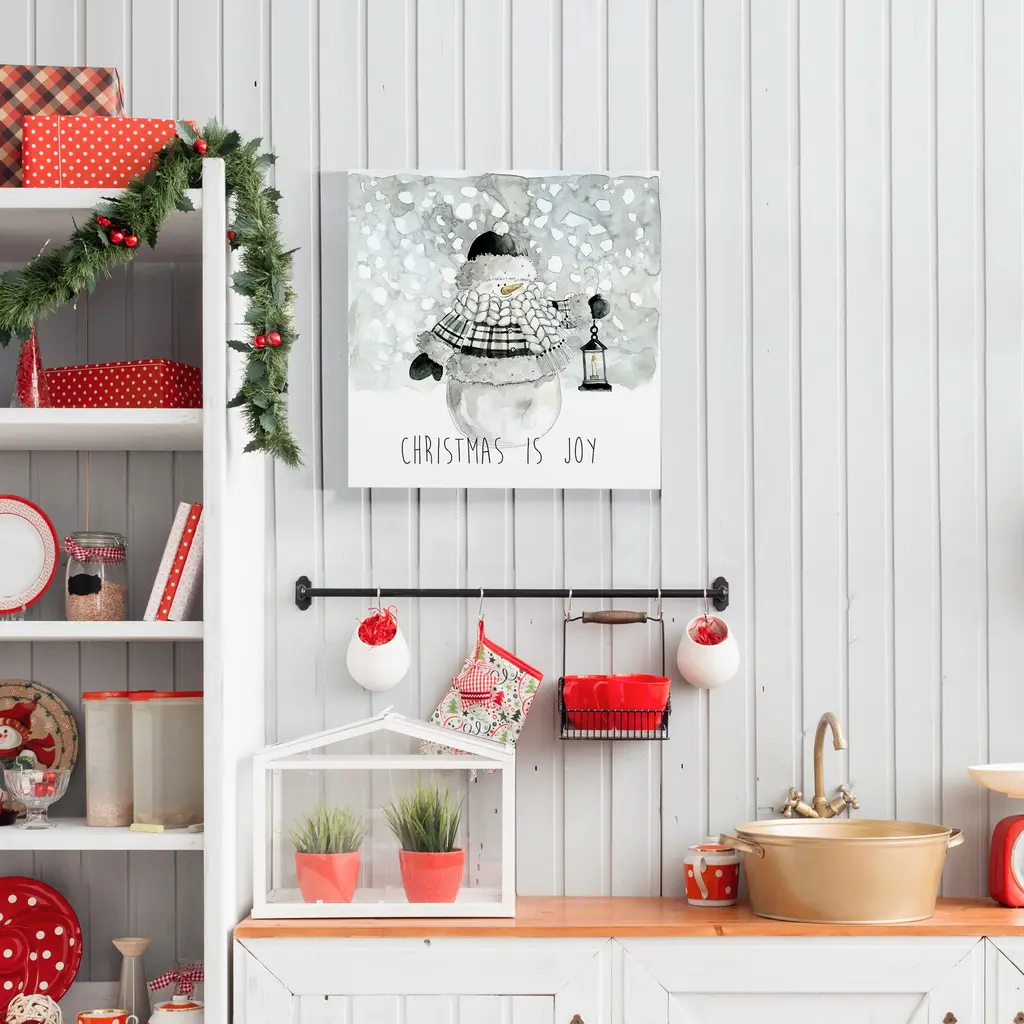 Christmas is Joy-Premium Gallery Wrapped Canvas - Ready to Hang A premium hand stretched gallery wrapped canvas print created to last. Featuring a beveled a solid wood stretcher bar, each piece comes ready to hand 5 SIZES AVAILABLE 10''X10'' - Overall Size 16''x16'' - Overall Size 24''x24'' - Overall Size 32''x32'' - Overall Size 40''x40'' - Overall Size Each piece is made to order. Built to Last Each piece comes ready to hang Solid wood stretcher Fade and Water resistant Made domestically