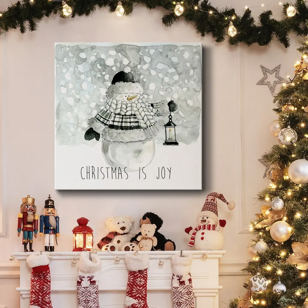 Christmas is Joy-Premium Gallery Wrapped Canvas - Ready to Hang A premium hand stretched gallery wrapped canvas print created to last. Featuring a beveled a solid wood stretcher bar, each piece comes ready to hand 5 SIZES AVAILABLE 10''X10'' - Overall Size 16''x16'' - Overall Size 24''x24'' - Overall Size 32''x32'' - Overall Size 40''x40'' - Overall Size Each piece is made to order. Built to Last Each piece comes ready to hang Solid wood stretcher Fade and Water resistant Made domestically