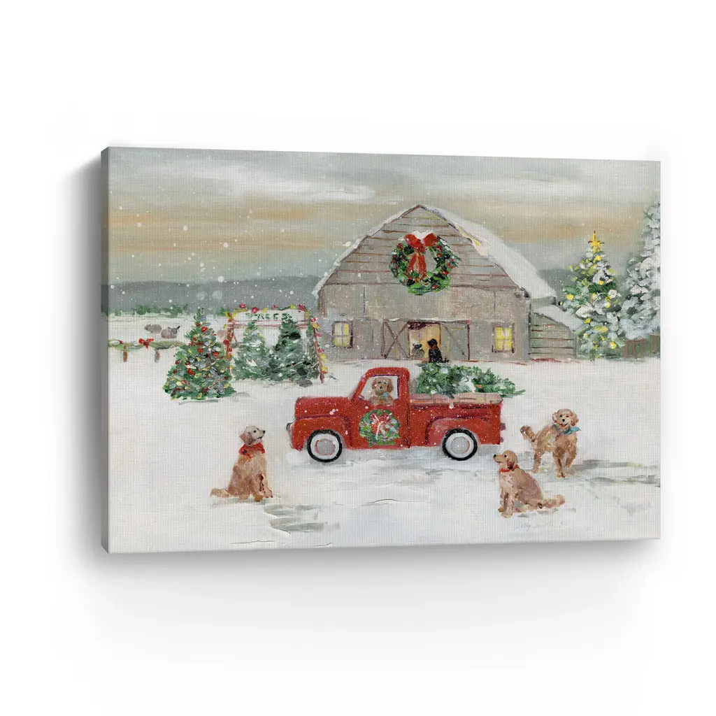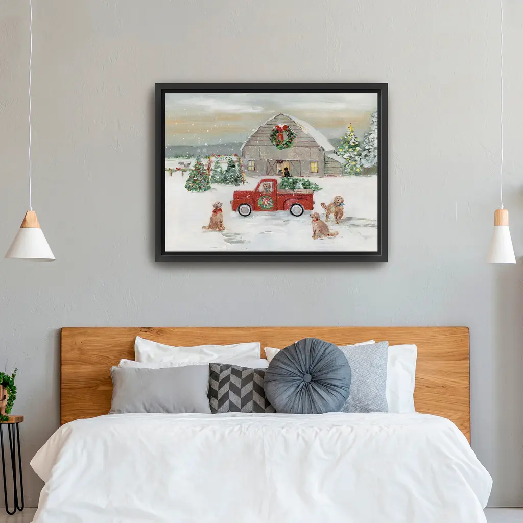 Christmas On The Farm Canvas Giclee - Framed / Black / 18x24