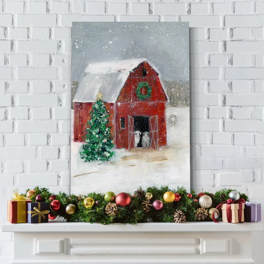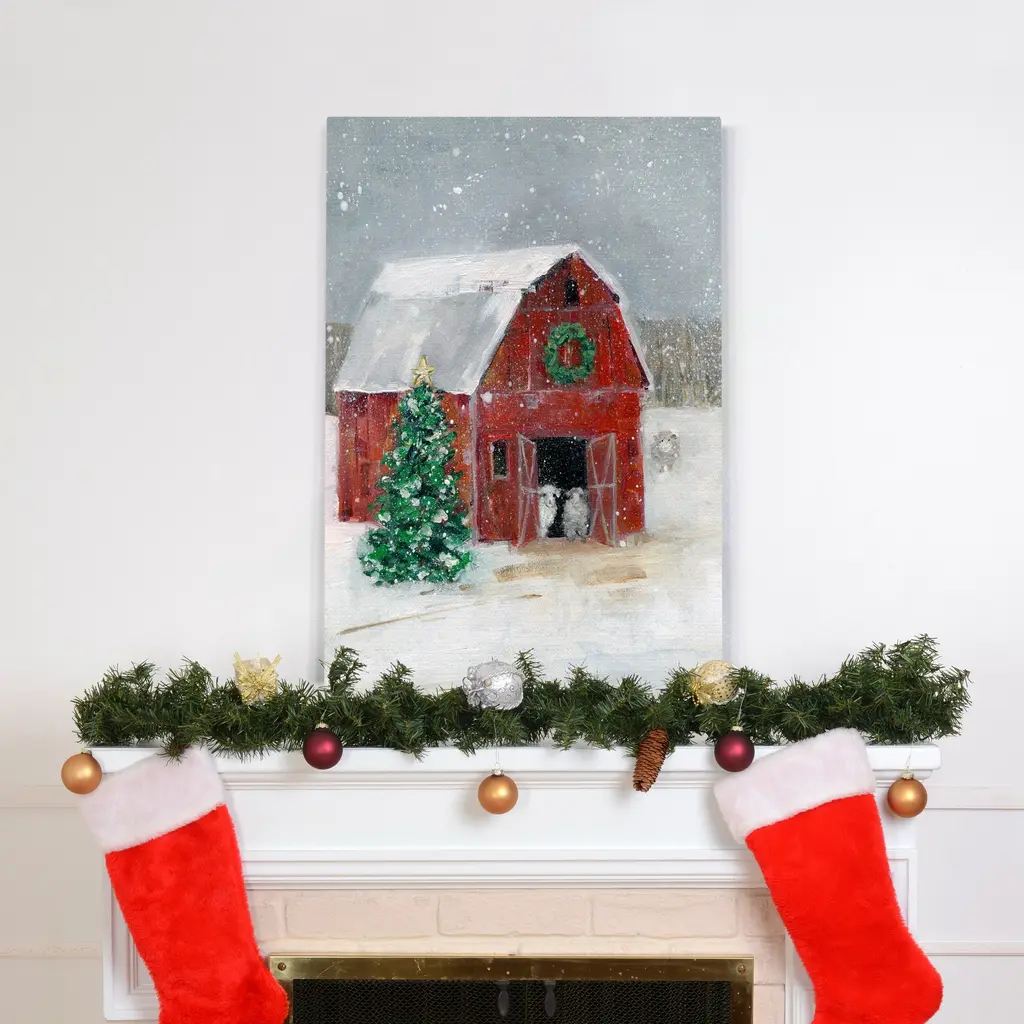 Christmas on the Farm I-Premium Gallery Wrapped Canvas - Ready to Hang A premium hand stretched gallery wrapped canvas print created to last. Featuring a beveled a solid wood stretcher bar, each piece comes ready to hand 5 SIZES AVAILABLE 8''X12'' - Overall Size 16''x20'' - Overall Size 18''x27'' - Overall Size 24''x36'' - Overall Size 32''x48'' - Overall Size Each piece is made to order. Built to Last Each piece comes ready to hang Solid wood stretcher Fade and Water resistant Made domestically