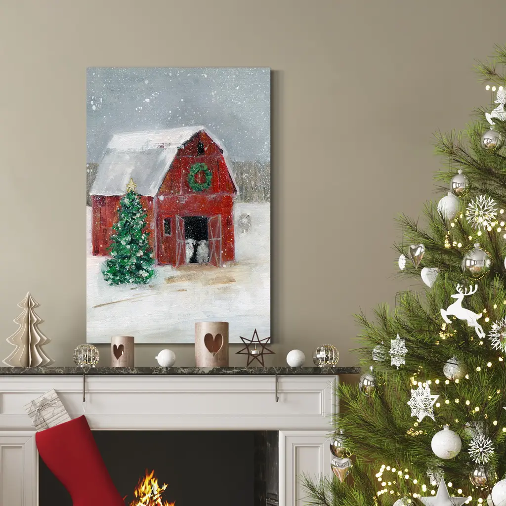 Christmas on the Farm I-Premium Gallery Wrapped Canvas - Ready to Hang A premium hand stretched gallery wrapped canvas print created to last. Featuring a beveled a solid wood stretcher bar, each piece comes ready to hand 5 SIZES AVAILABLE 8''X12'' - Overall Size 16''x20'' - Overall Size 18''x27'' - Overall Size 24''x36'' - Overall Size 32''x48'' - Overall Size Each piece is made to order. Built to Last Each piece comes ready to hang Solid wood stretcher Fade and Water resistant Made domestically