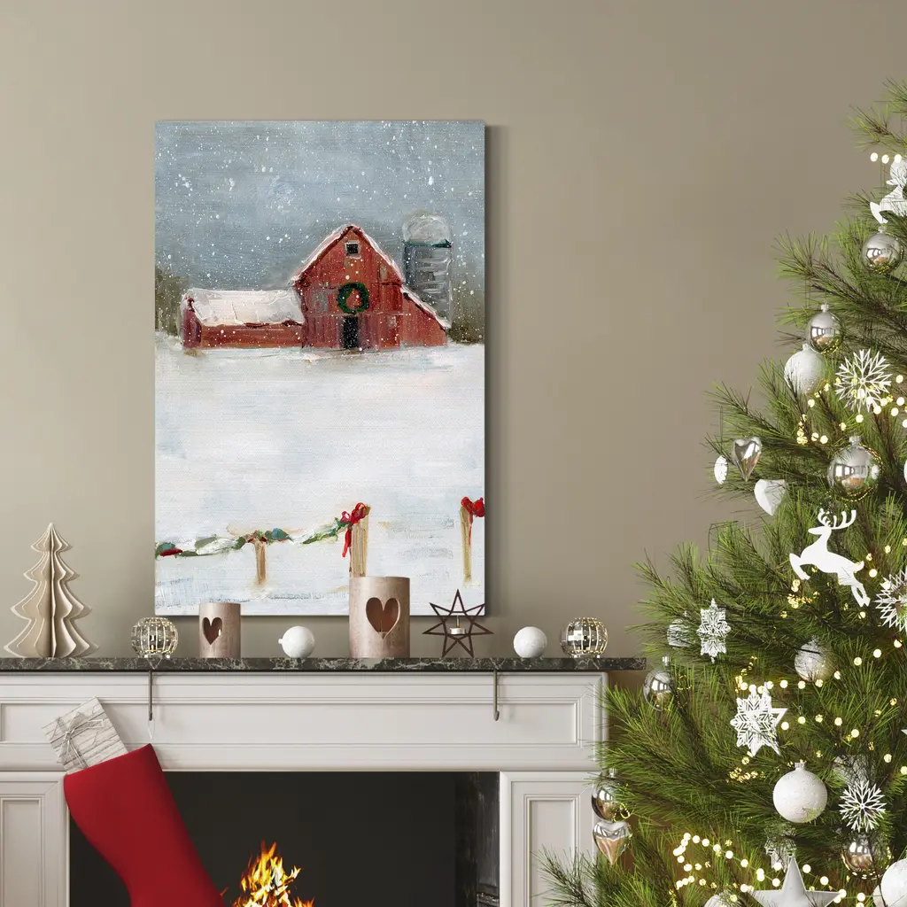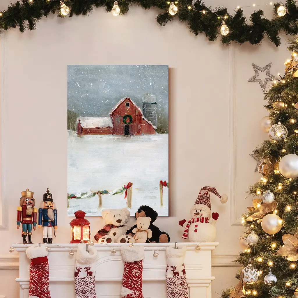 Bring the charm of a cozy Christmas on the farm to your home with our Christmas on the Farm II-Premium Gallery Wrapped Canvas. This premium hand-stretched canvas print is built to last, with a solid wood stretcher bar and fade and water-resistant qualities. Available in 5 sizes, each piece comes ready to hang and is made domestically to ensure quality.Features: