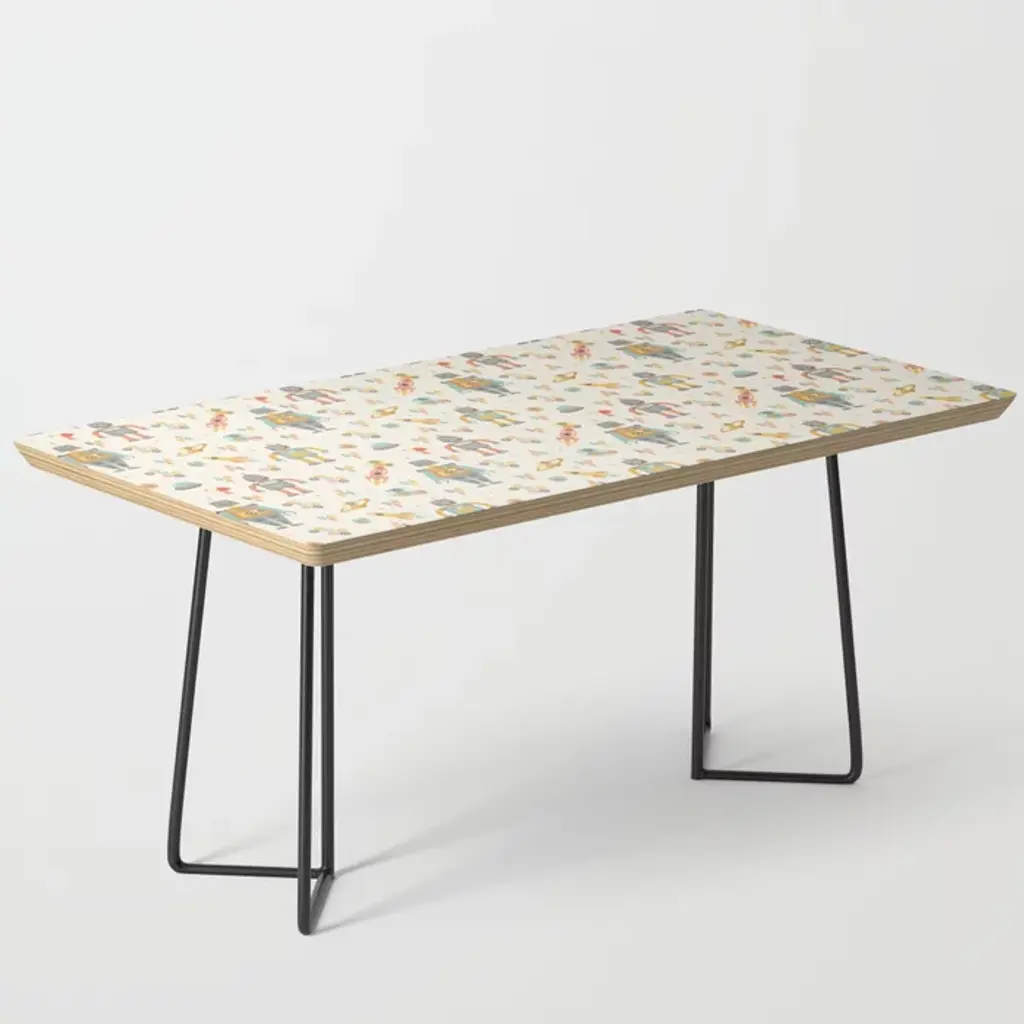 35.75" x 17.75" x 17" (H)Baltic birch table top with beveled edgeHigh quality print with satin finishSteel legs available in black or goldAssembly requiredEvery order is made just for youSHIPPING: Items are made to order and typically ship within 3-4 business days. Click here for more information about delivery options.Furniture sales are final. Click here for more information on returns.