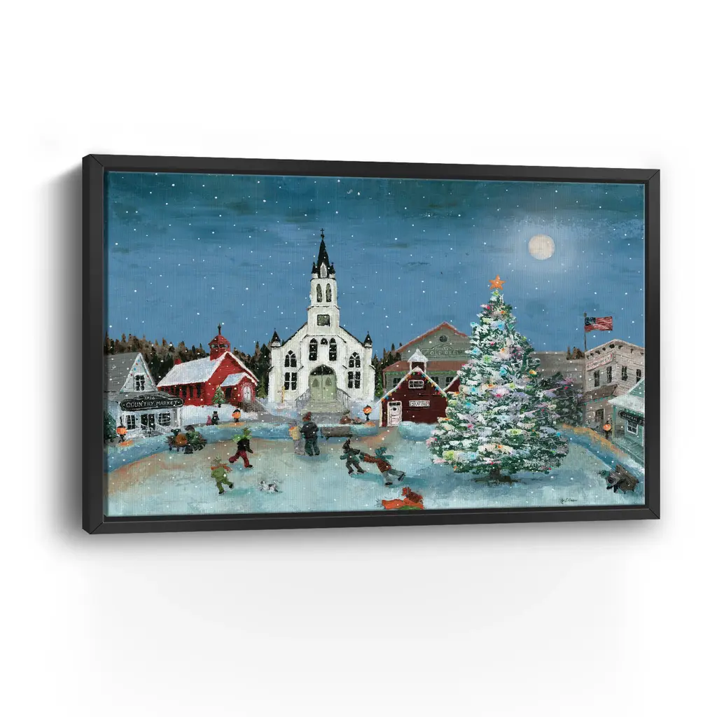 Christmas Scene Moon Canvas Giclee - Framed / Dark Walnut / 16x24