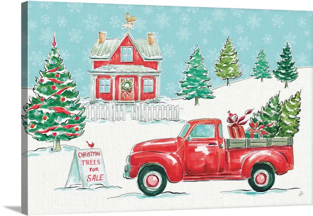 Bring the cozy charm of a Christmas tree farm to your home decor with this Premium Gallery Wrapped Canvas. Hand-stretched to perfection, this canvas print is built to last and features a solid wood stretcher bar. The fade and water-resistant design ensures that your artwork remains vibrant for years to come. Available in 5 different sizes, this piece comes ready to hang and is made domestically.Features: