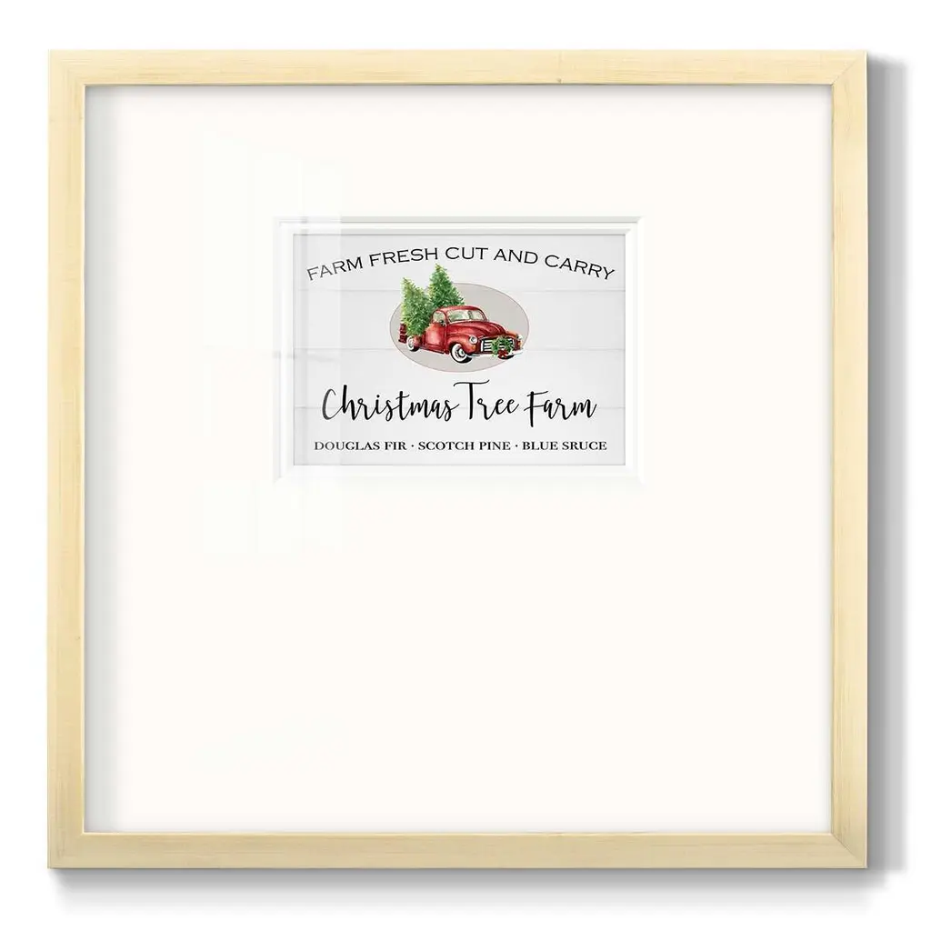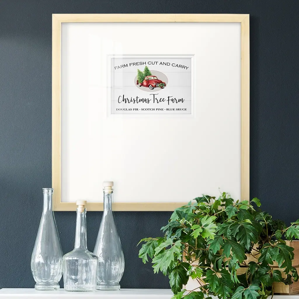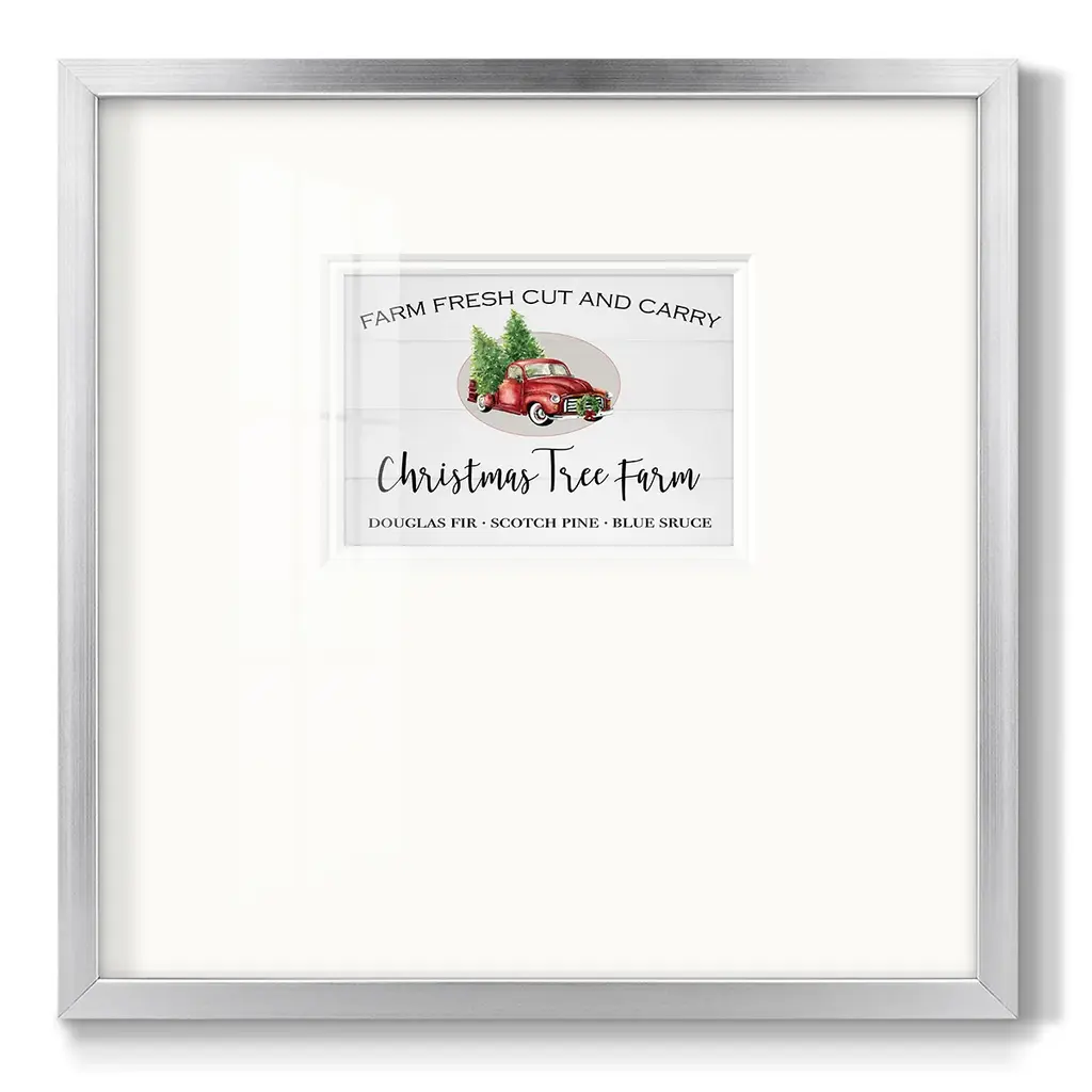 Christmas Tree FarmPremium Framed Print A framed cold pressed paper print featuring superior double matting and quality frame. 2 SIZES AVAILABLE 16''X16''' - Overall Size 20''X20''' - Overall Size Each piece is made to order. Each piece comes with hanging hardware. Made in the USA Ready to Hang Giclee Paper Print Plexiglass Beveled Matt Board Double Matte Board