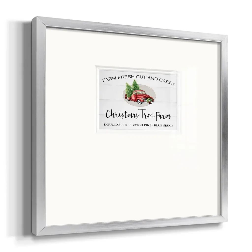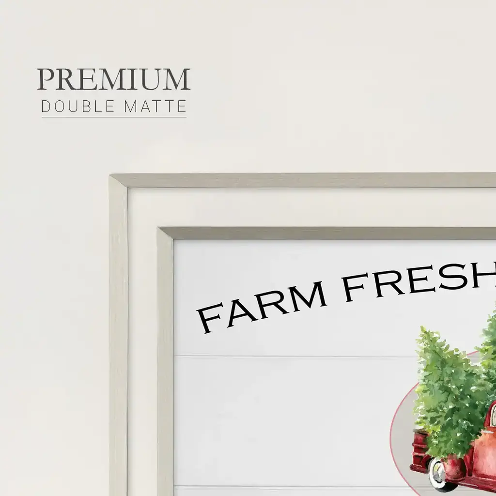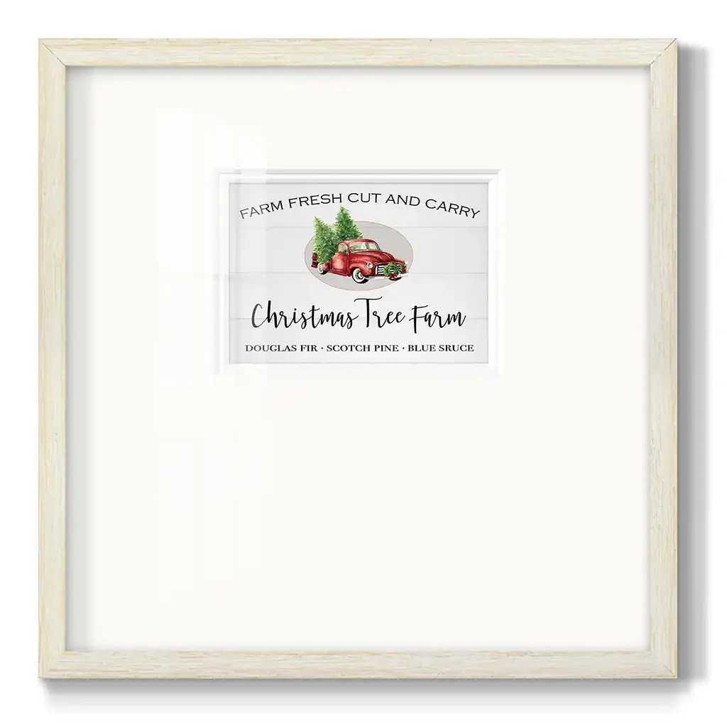 Christmas Tree FarmPremium Framed Print A framed cold pressed paper print featuring superior double matting and quality frame. 2 SIZES AVAILABLE 16''X16''' - Overall Size 20''X20''' - Overall Size Each piece is made to order. Each piece comes with hanging hardware. Made in the USA Ready to Hang Giclee Paper Print Plexiglass Beveled Matt Board Double Matte Board