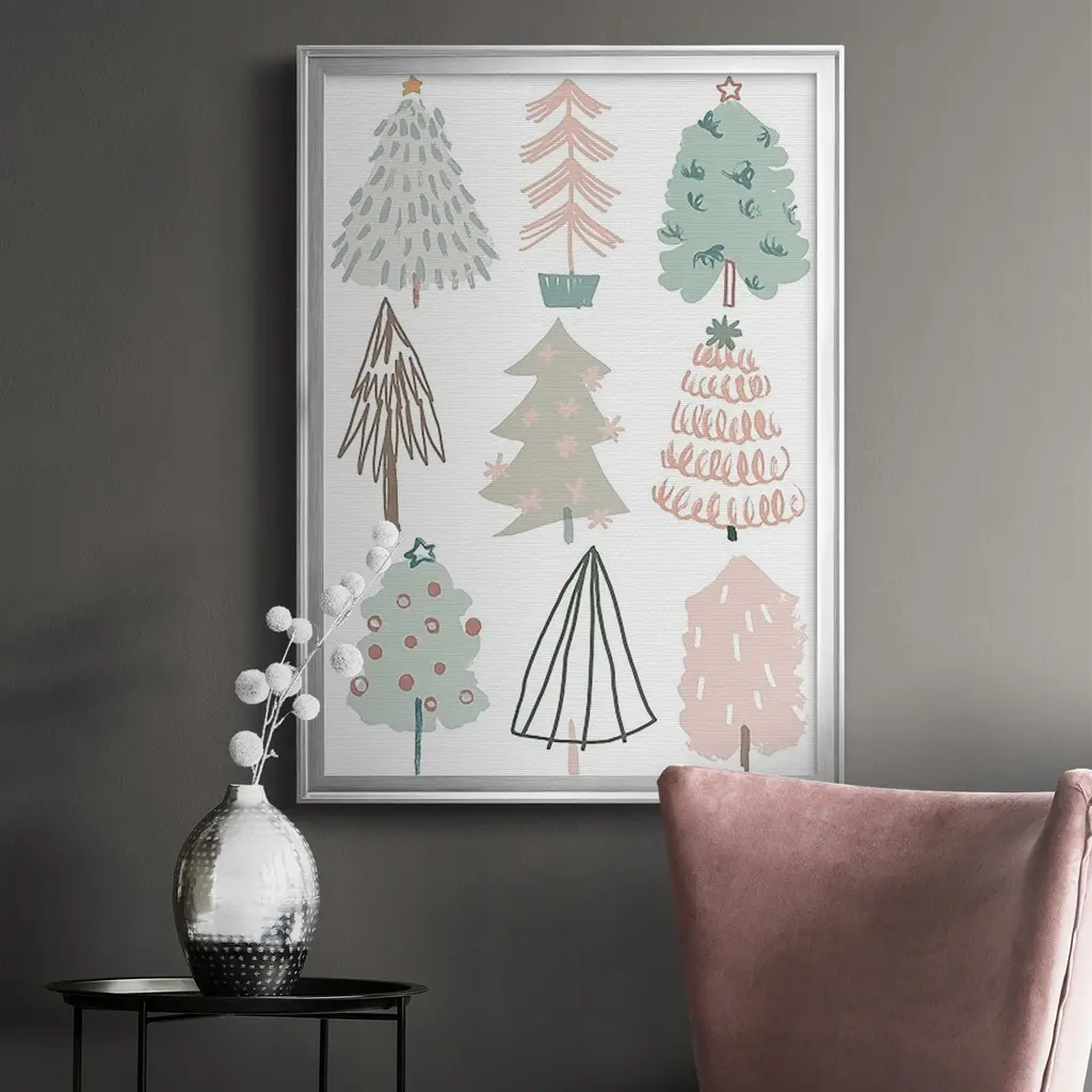 Christmas Tree Sketchbook I Premium Framed Print - Ready to Hang A Premium Framed Print created to last. Framed in distressed wood and available in an array of sizes and colors Featuring a beveled a solid wood stretcher bar, each piece comes ready to hand 4 SIZES AVAILABLE 30.5''X42.5'' - Overall Size 26.5'X36.5'' - Overall Size 22.5''x30.5'' - Overall Size 18.5''x24.5'' - Overall Size Each piece is made to order. Each piece comes with hanging hardware. Made in the USA Ready to Hang